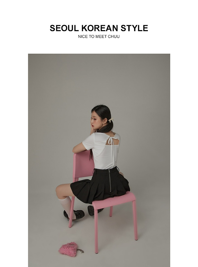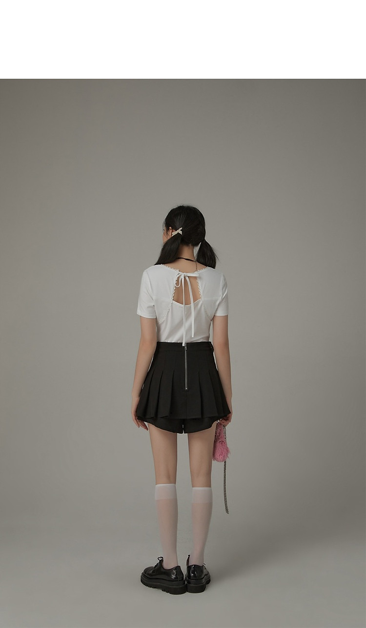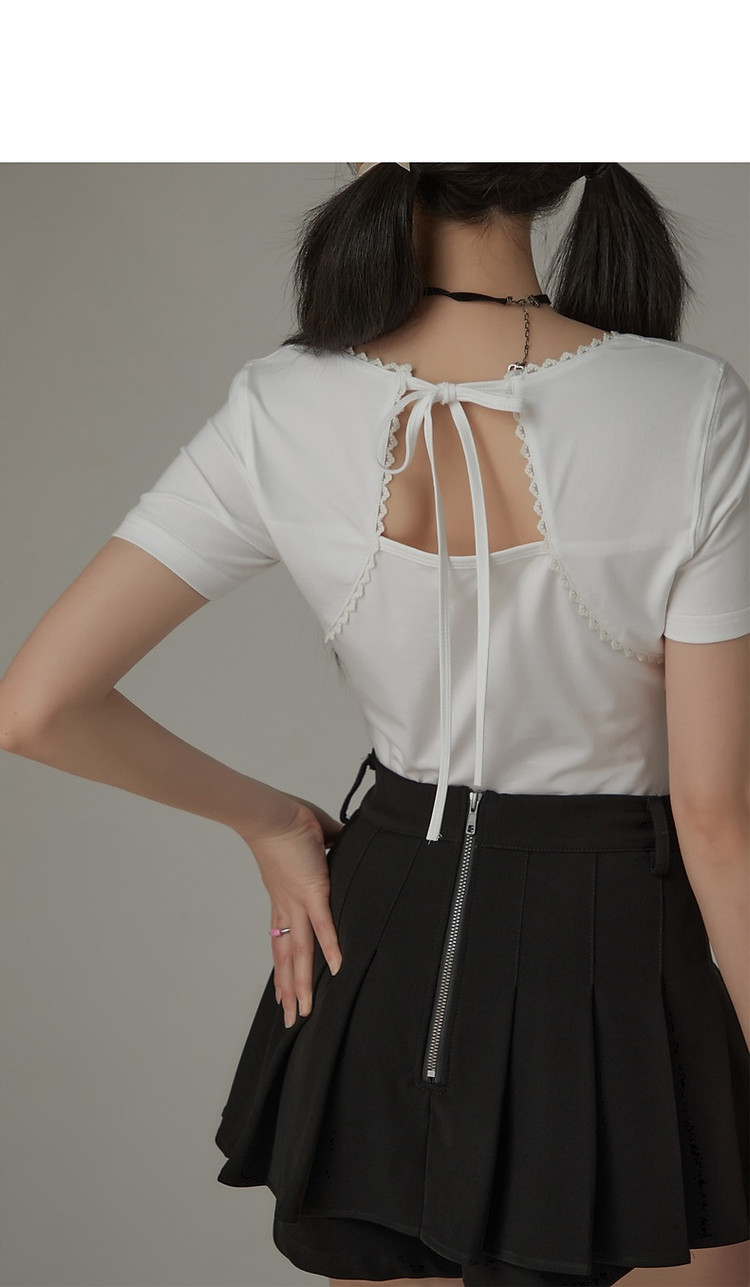 小众露背短袖T恤女夏甜辣修身撞色短上衣 621907