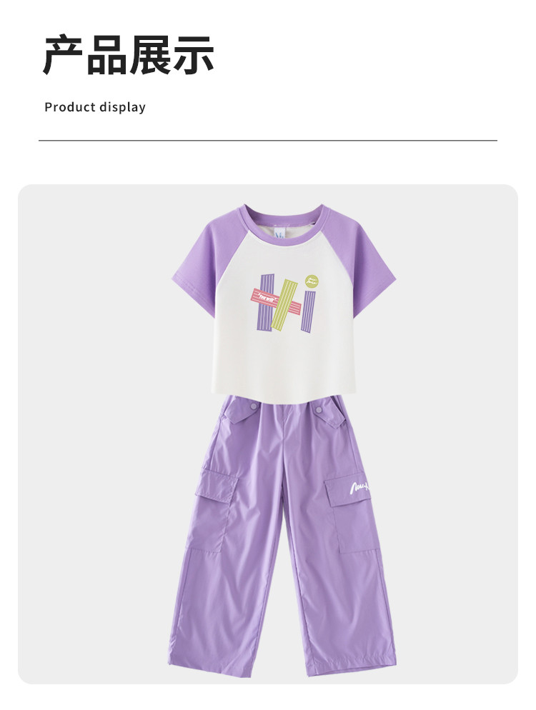 商品名称:童装女童套装夏季中大童时尚撞色短袖T恤阔腿裤两件套休闲百搭 173267