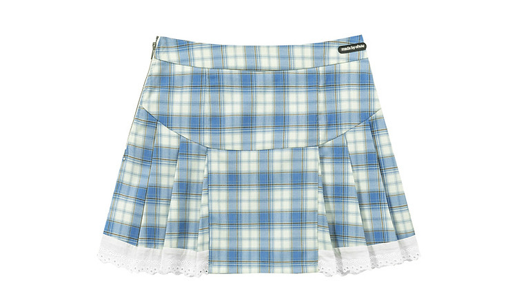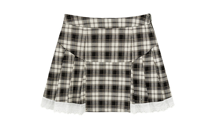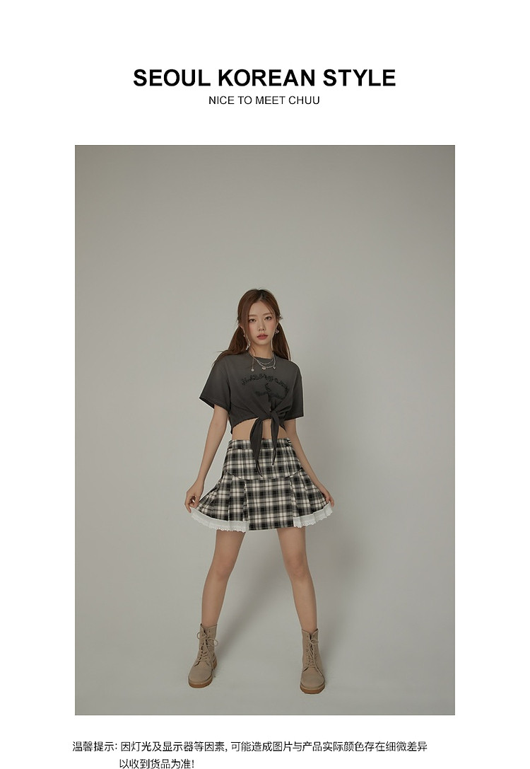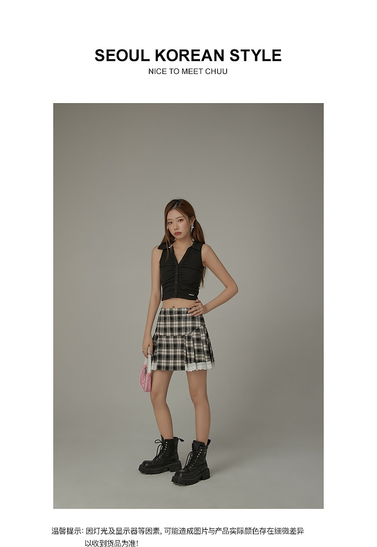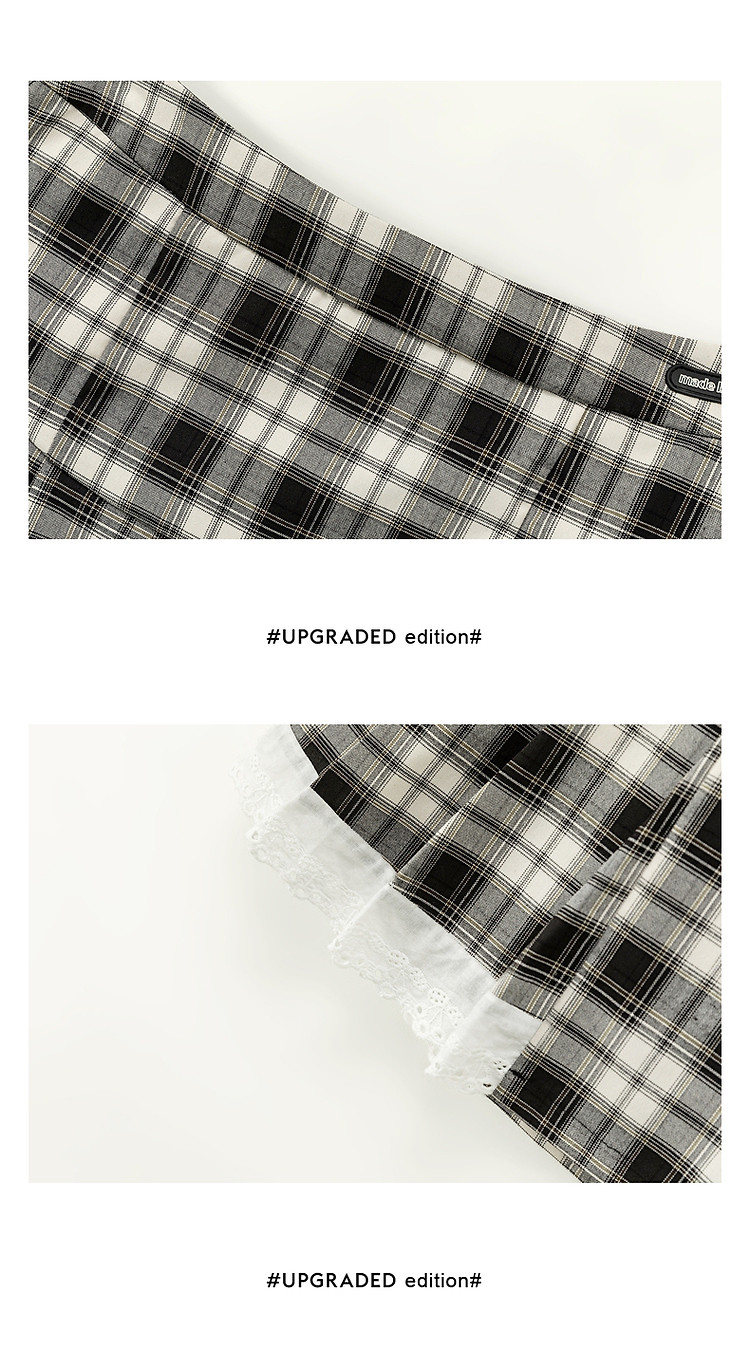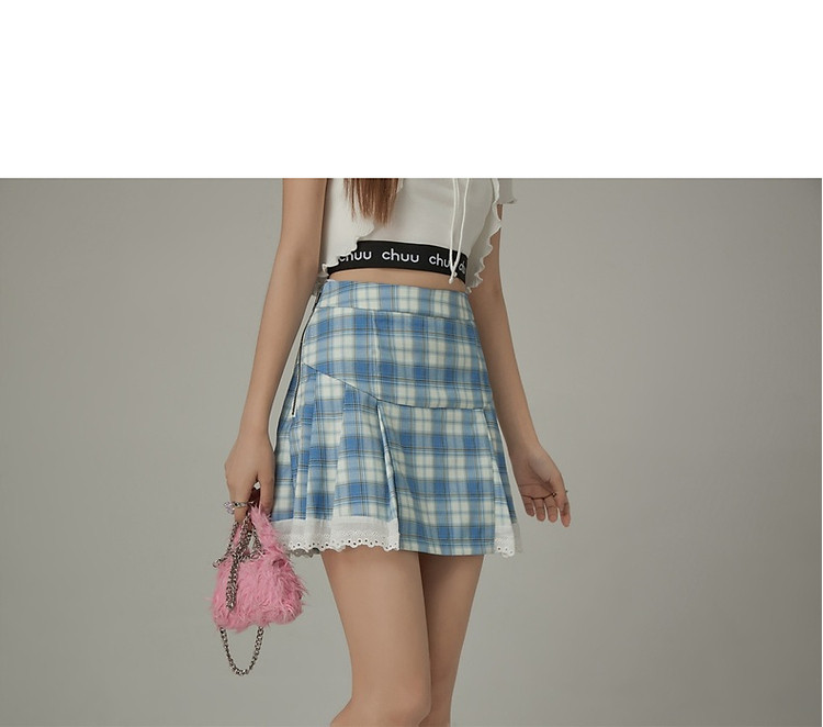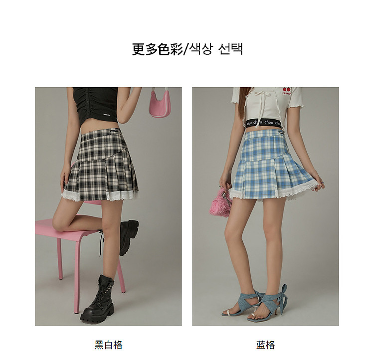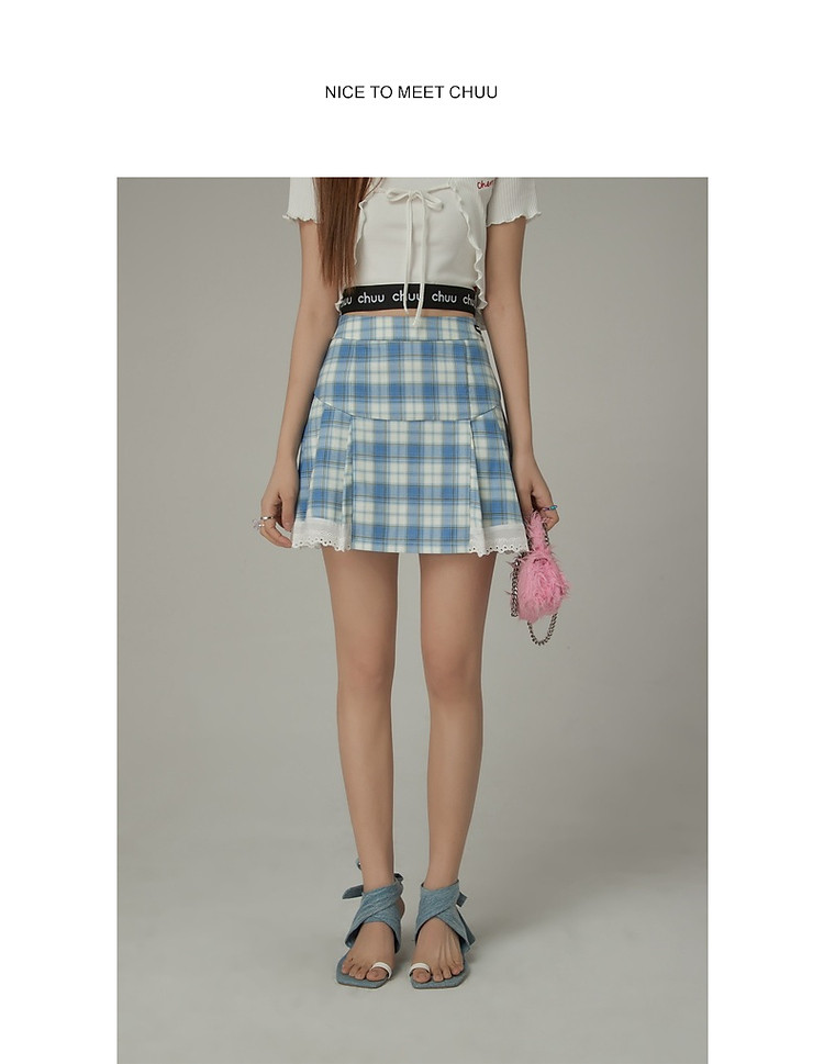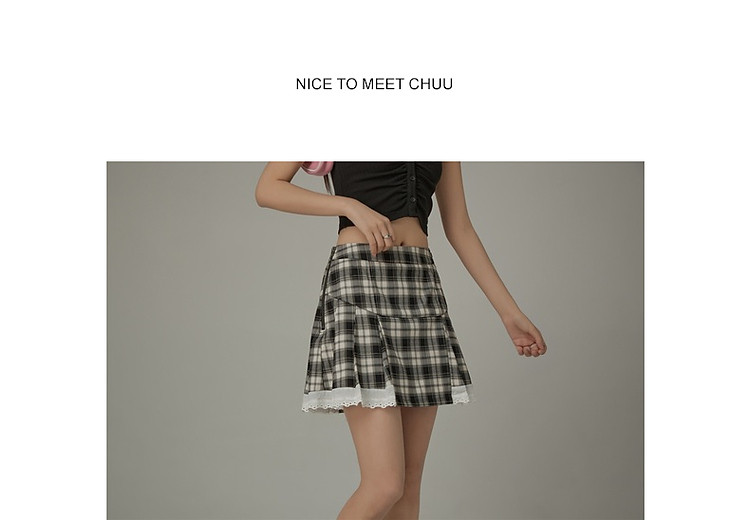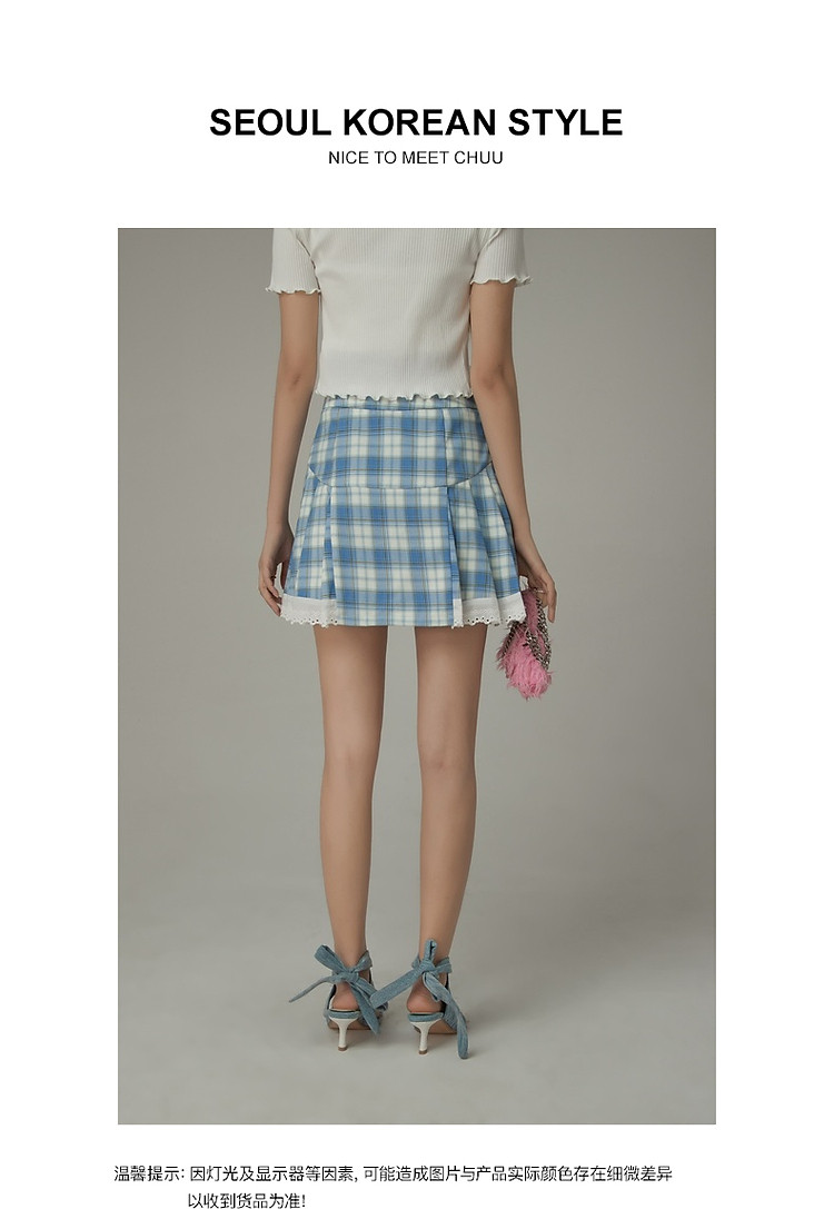 商品名称:CHUU格子半身裙女秋蕾丝边百褶a字公主短裙薄 981651