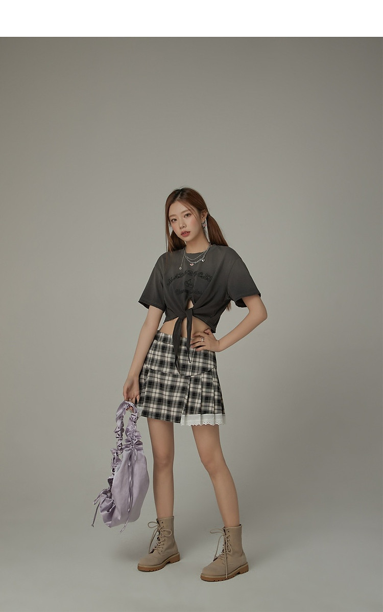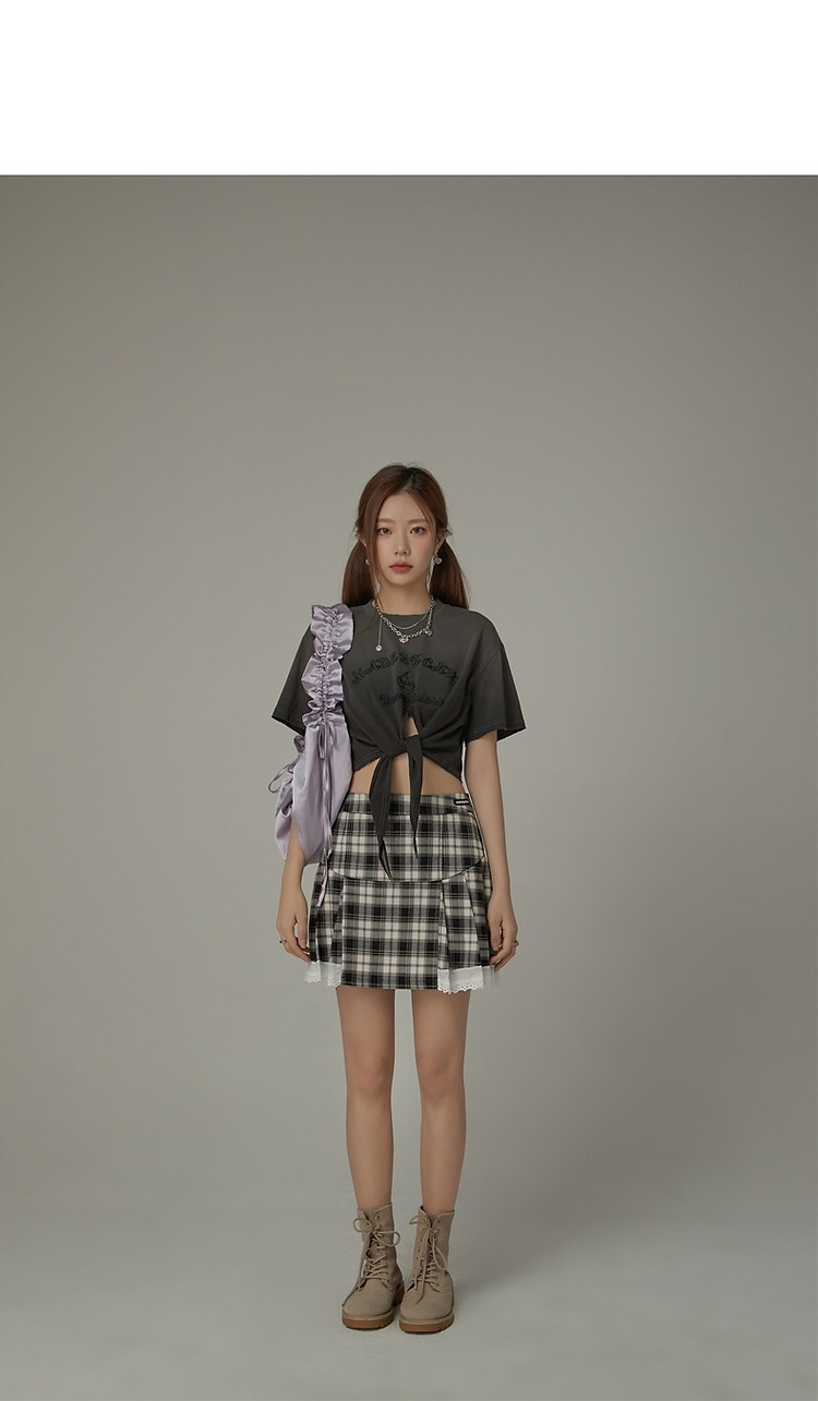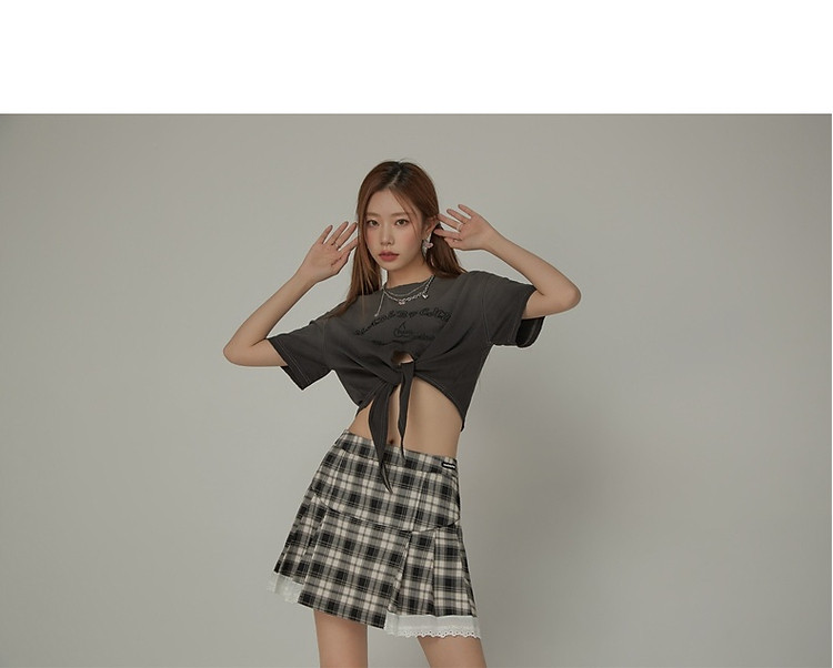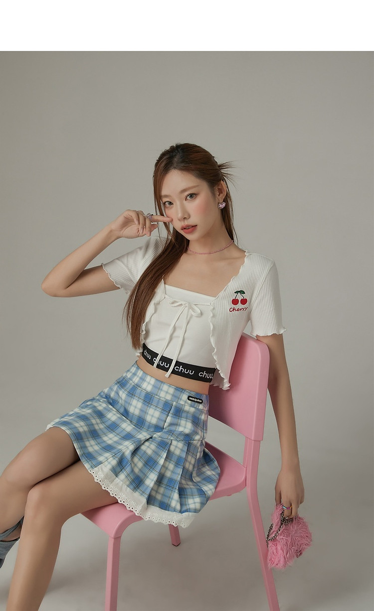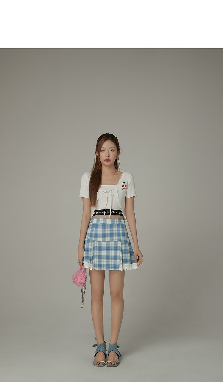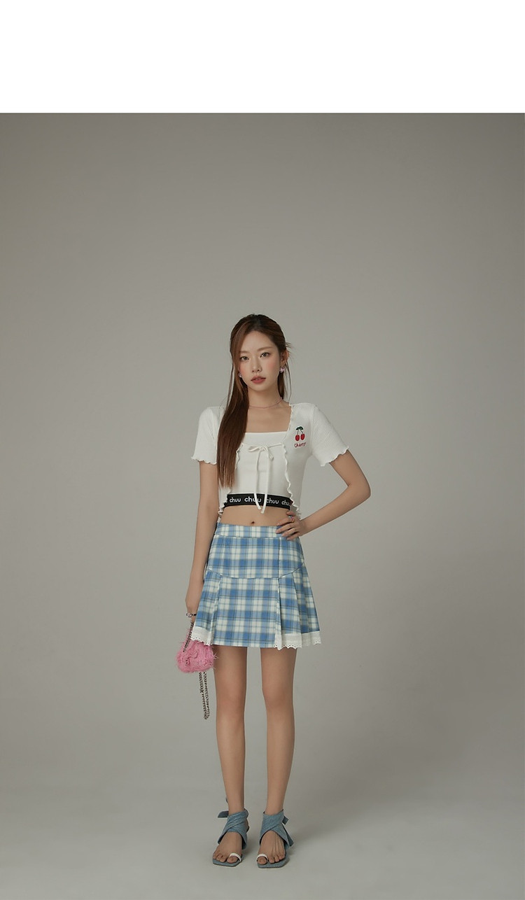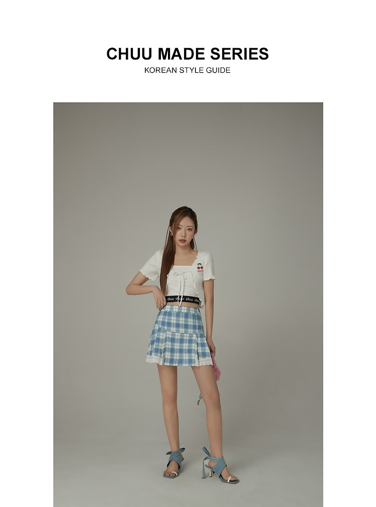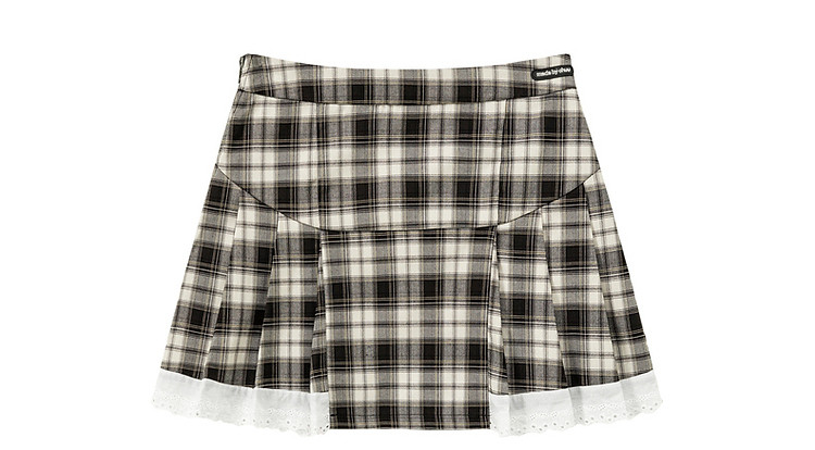 商品名称:CHUU格子半身裙女秋蕾丝边百褶a字公主短裙薄 981651