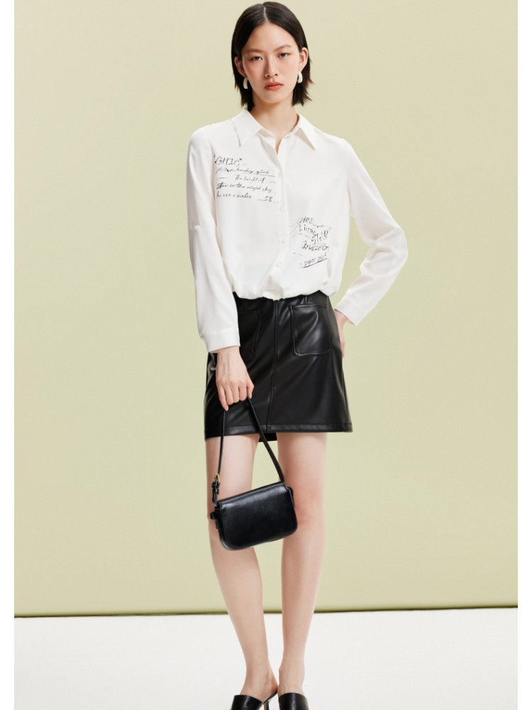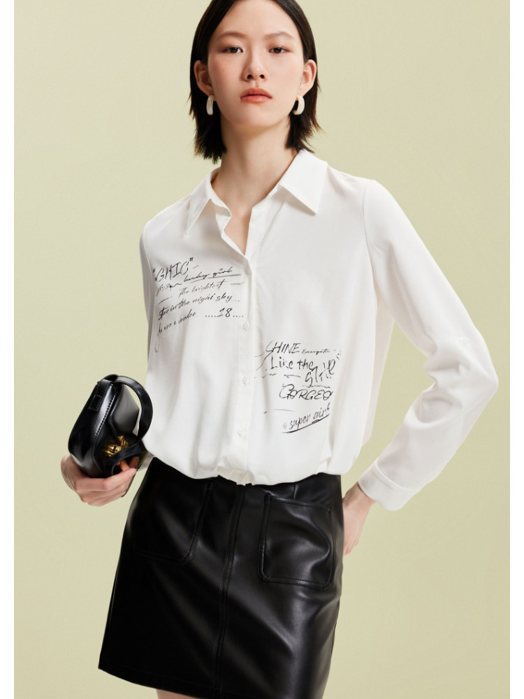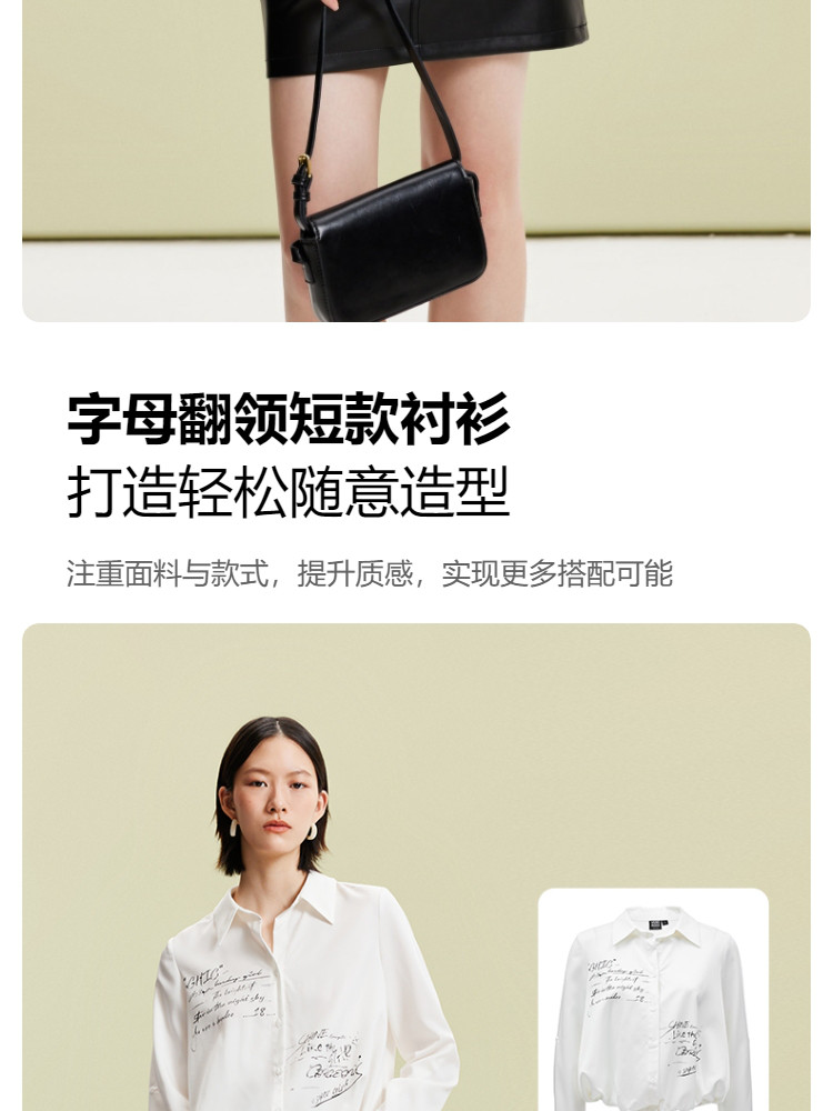 【含莱赛尔】衬衫衬衣女字母翻领短款简约通勤 998353