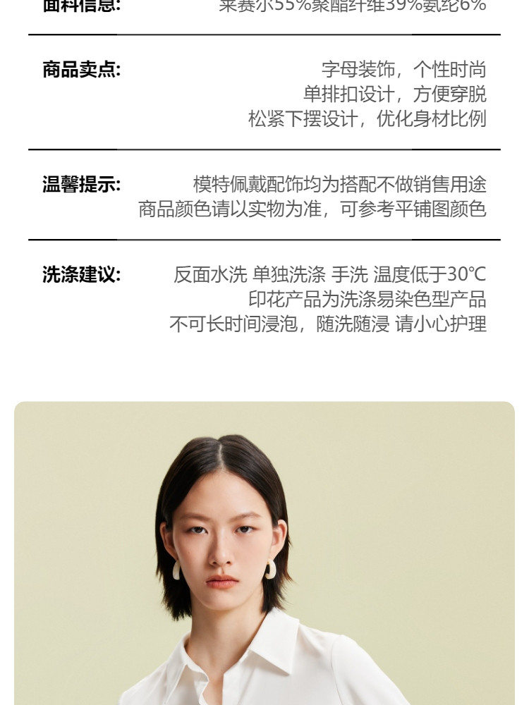 商品名称:【含莱赛尔】衬衫衬衣女字母翻领短款简约通勤 998353