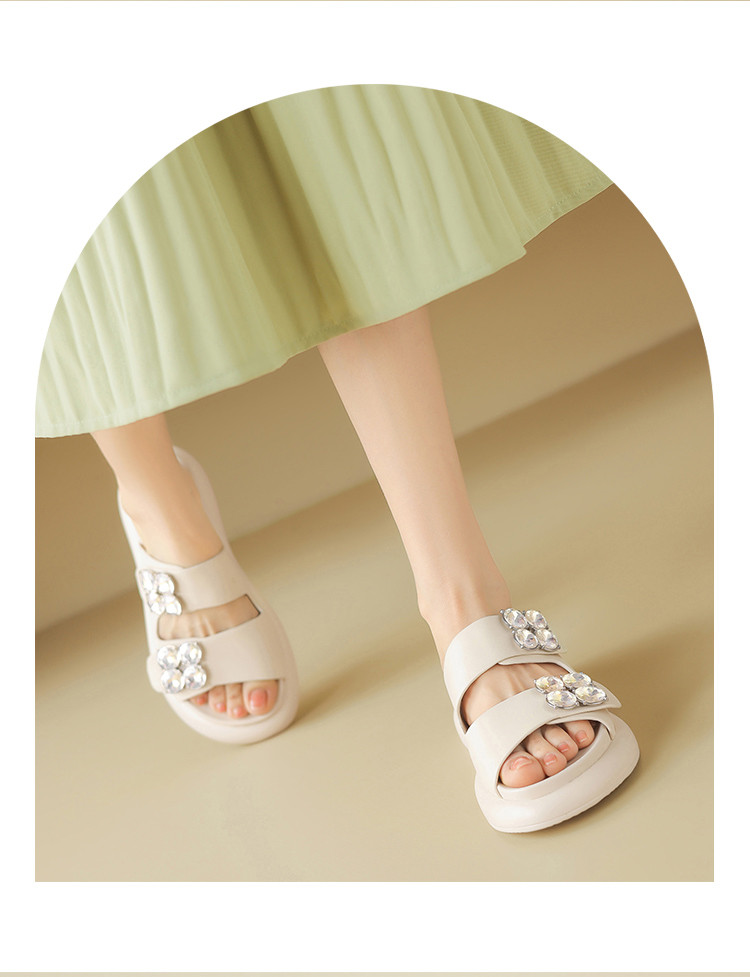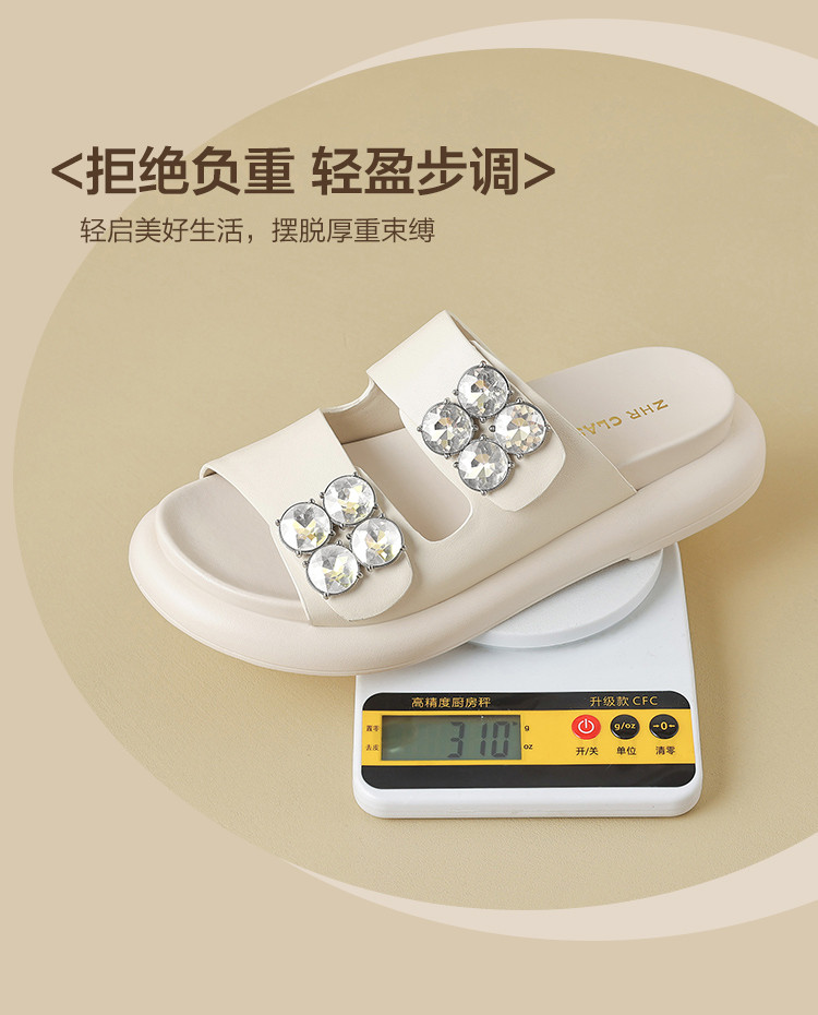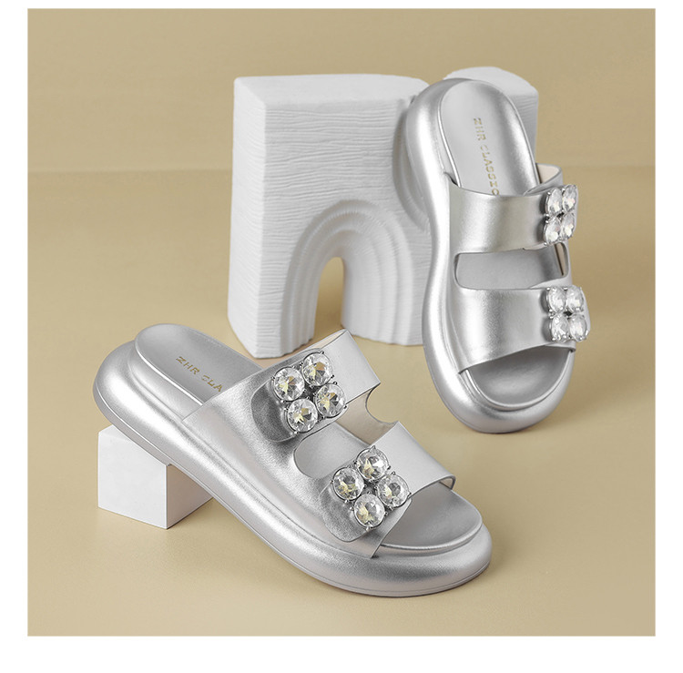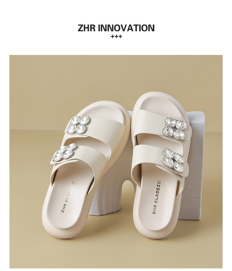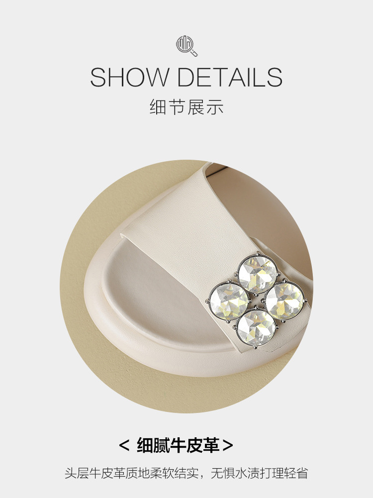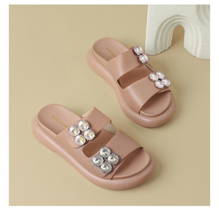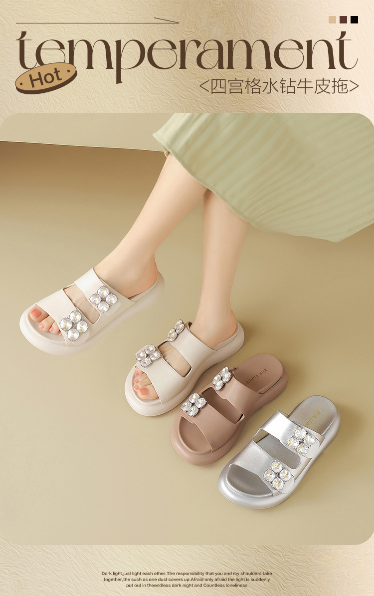 【头层牛皮】水钻真皮时装拖鞋厚底拖鞋凉拖鞋女外穿夏季女士拖鞋 525056