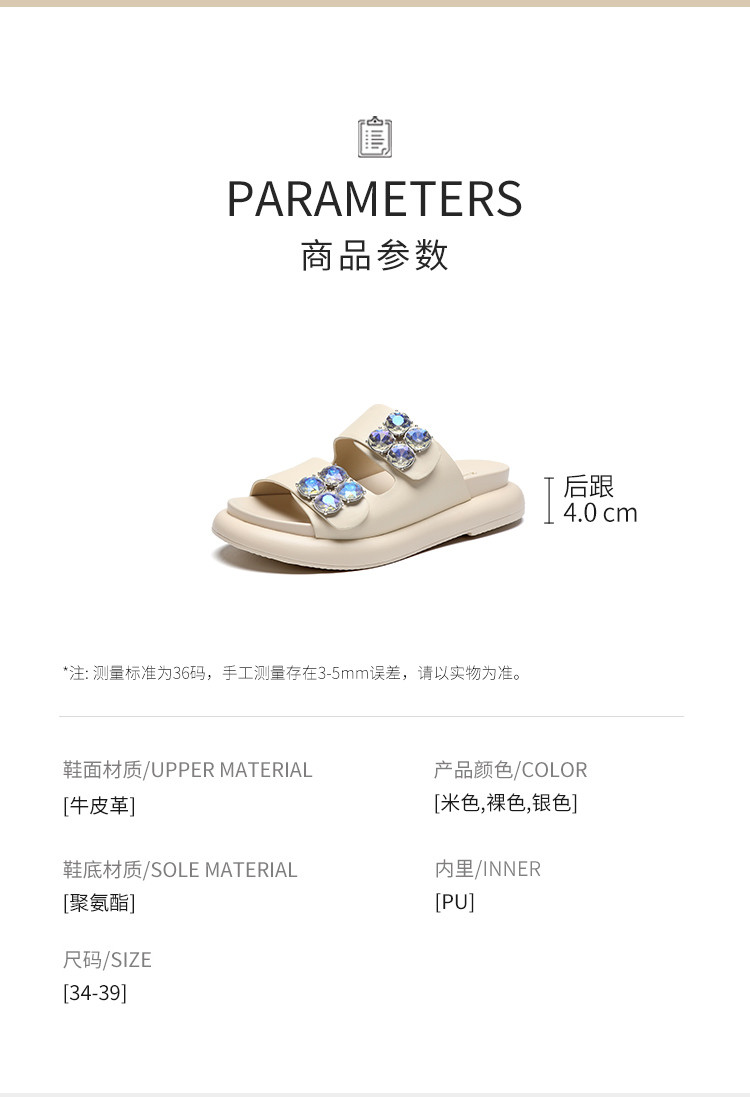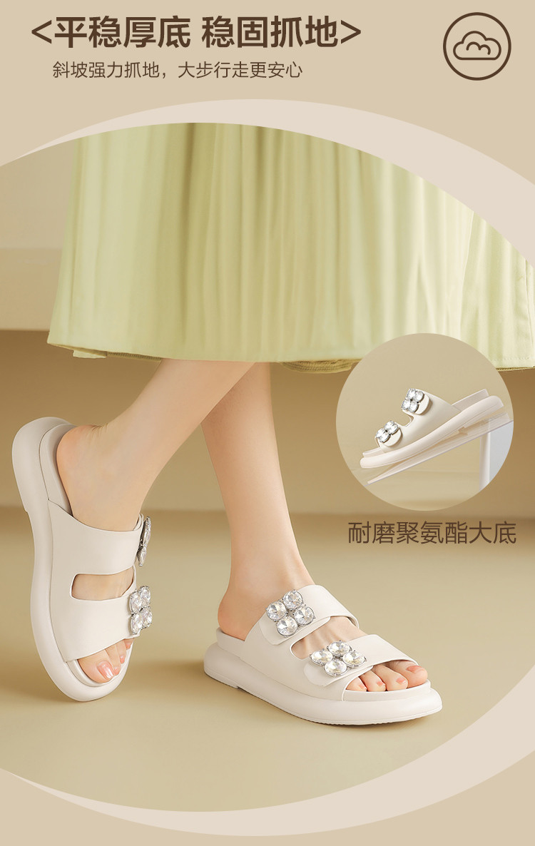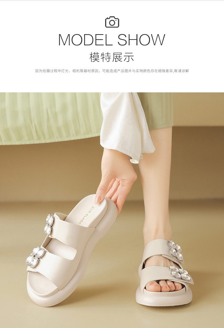 商品名称:【头层牛皮】水钻真皮时装拖鞋厚底拖鞋凉拖鞋女外穿夏季女士拖鞋 525056