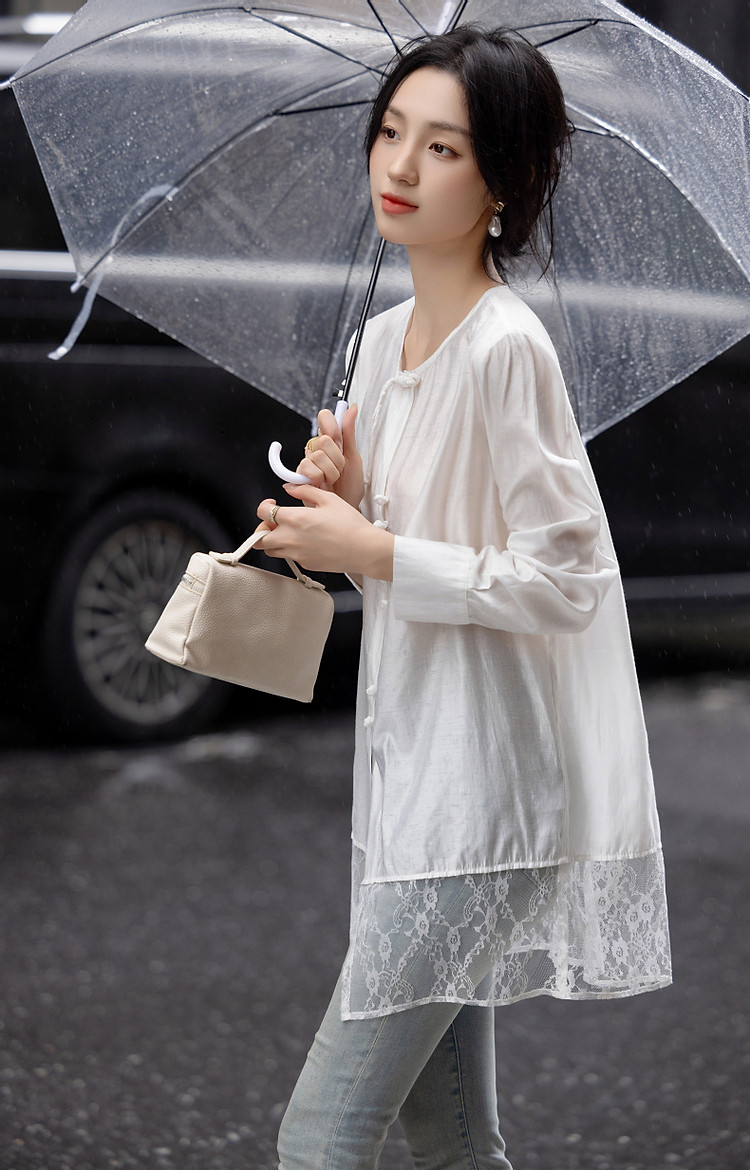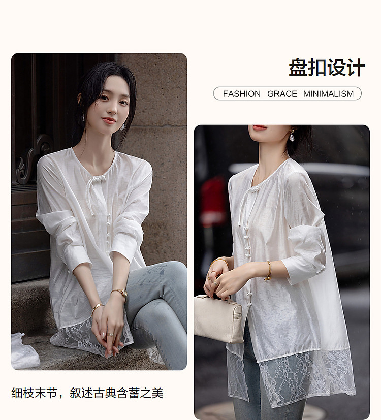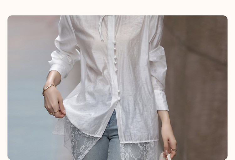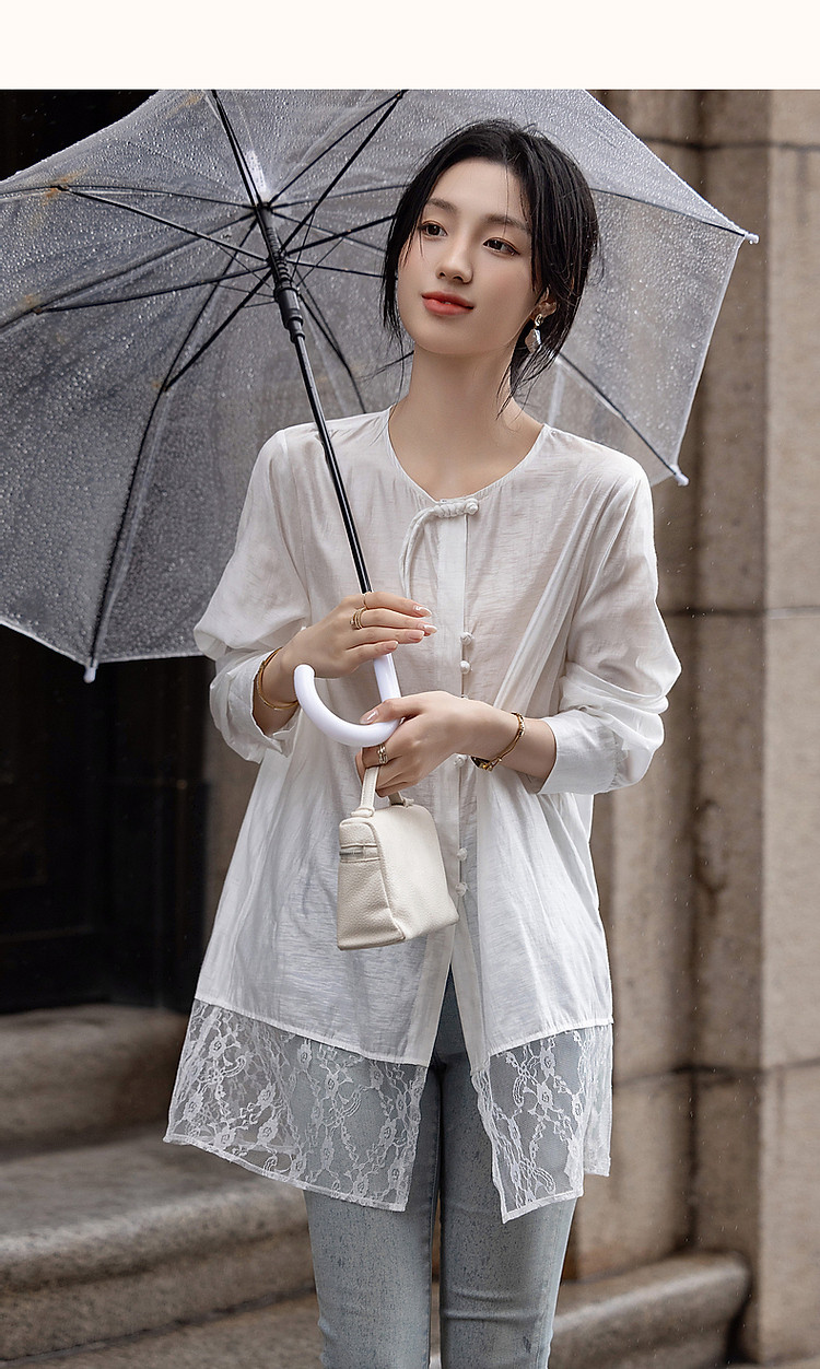 商品名称:【告白讯息】秋国风新中式小圆领盘扣衬衫拼接蕾丝衬衣女式上衣 383937