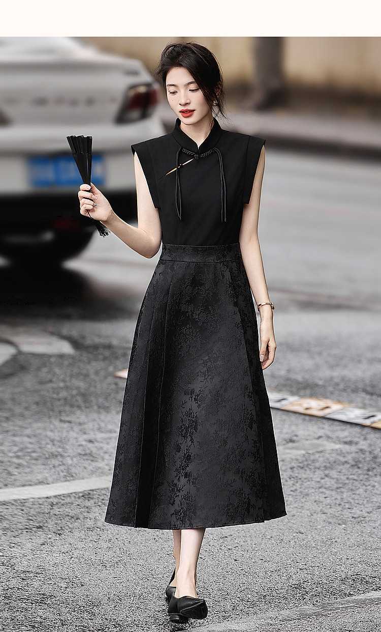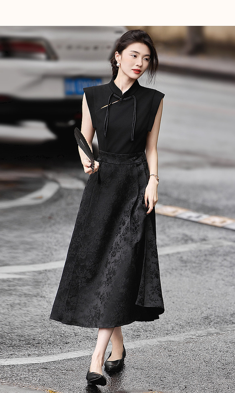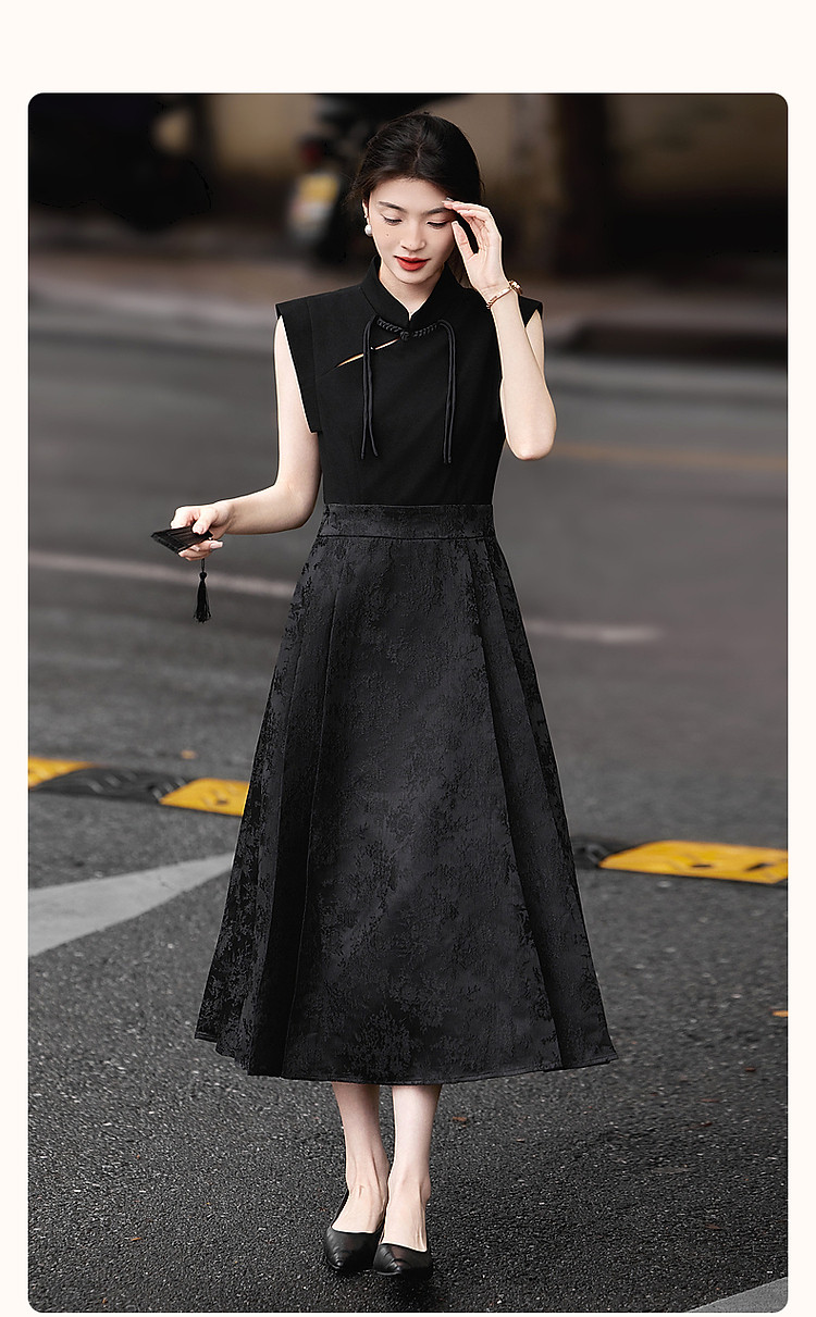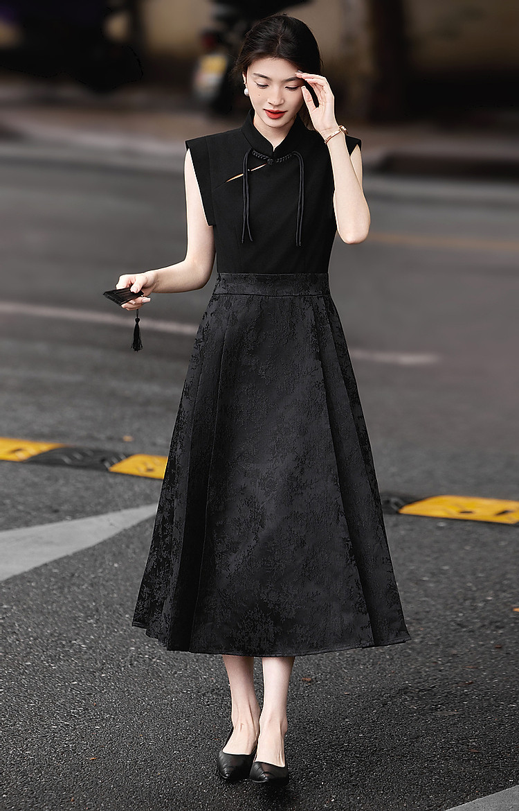 商品名称:【故园惊梦】春秋国风新中式裙提花盘扣加捻乱麻藏肉连衣裙 875457