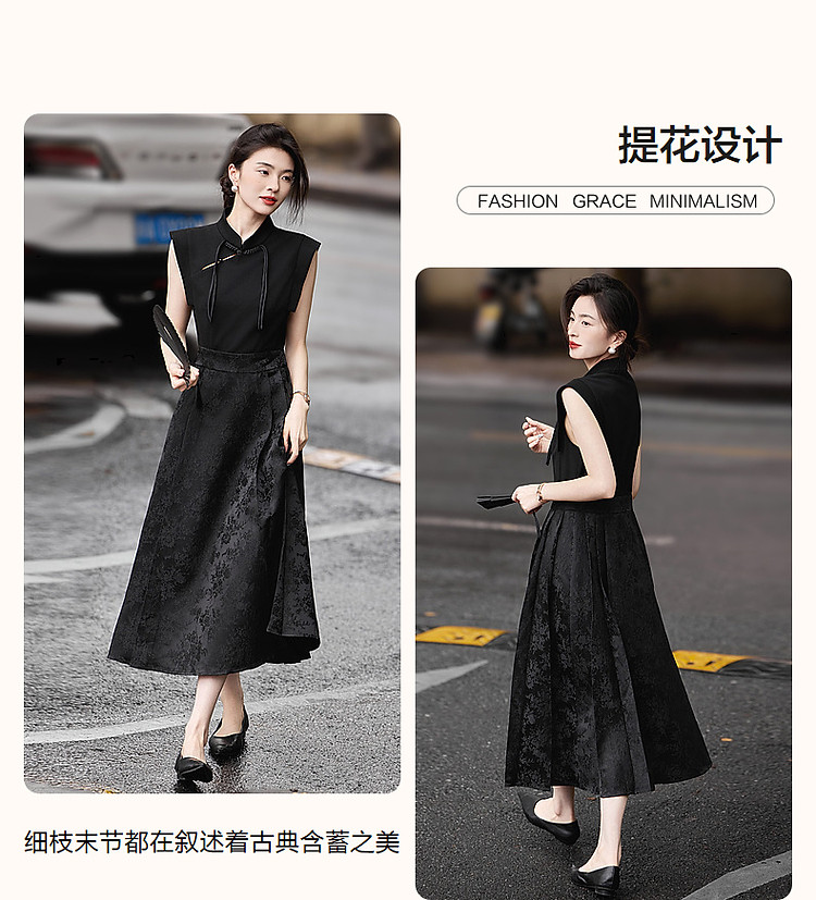 【故园惊梦】春秋国风新中式裙提花盘扣加捻乱麻藏肉连衣裙 875457