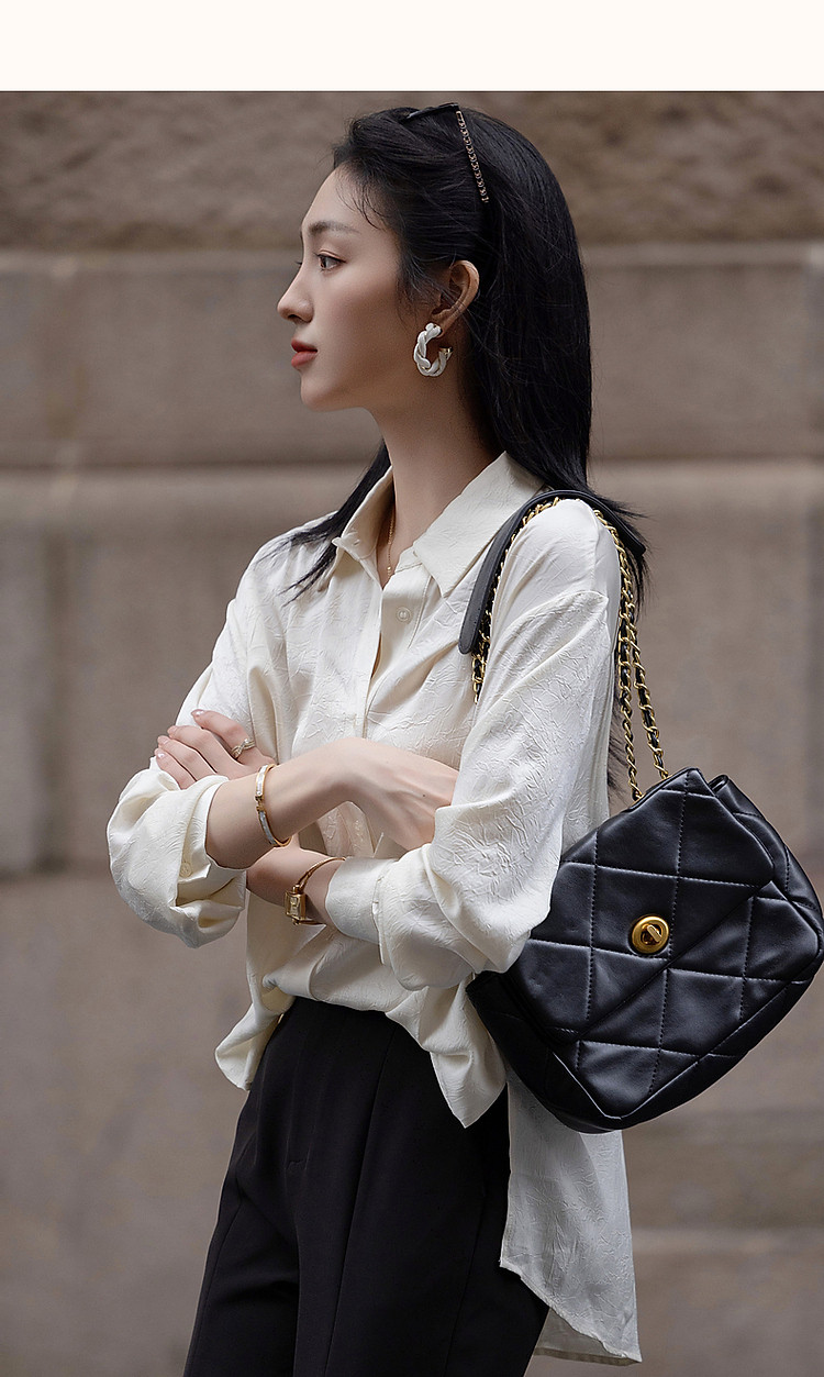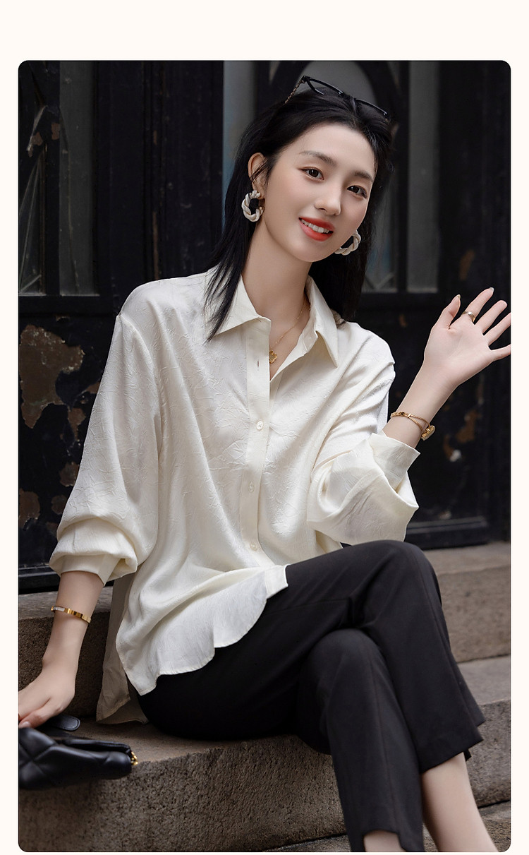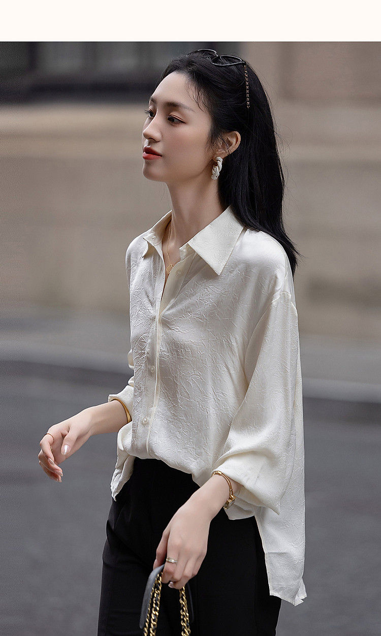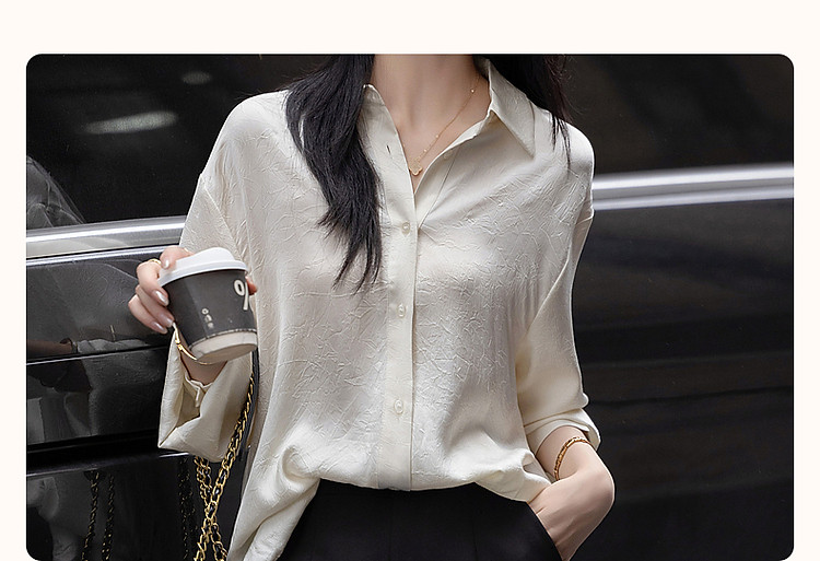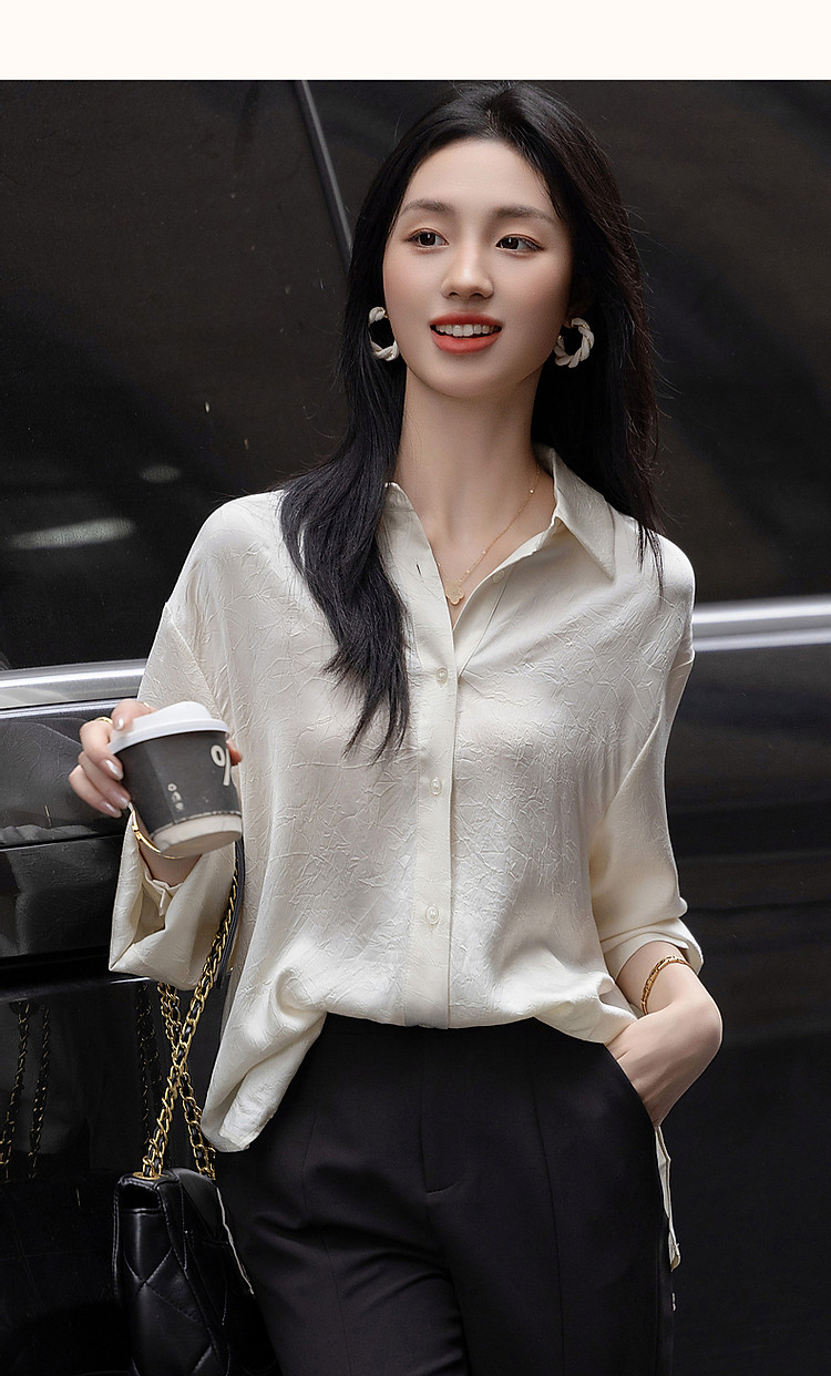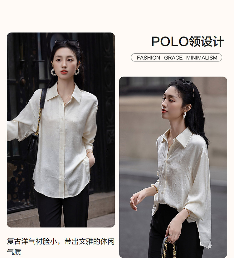 商品名称:【四季通穿】春简约风通勤衬衫POLO领抓皱亮感肌理衬衣女上衣 232385