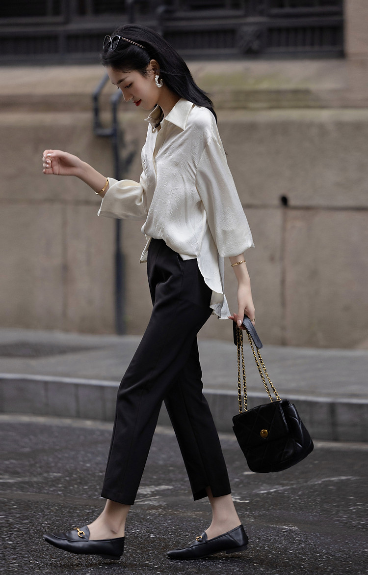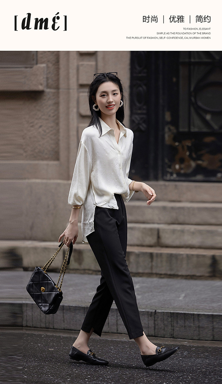 【四季通穿】春简约风通勤衬衫POLO领抓皱亮感肌理衬衣女上衣 232385
