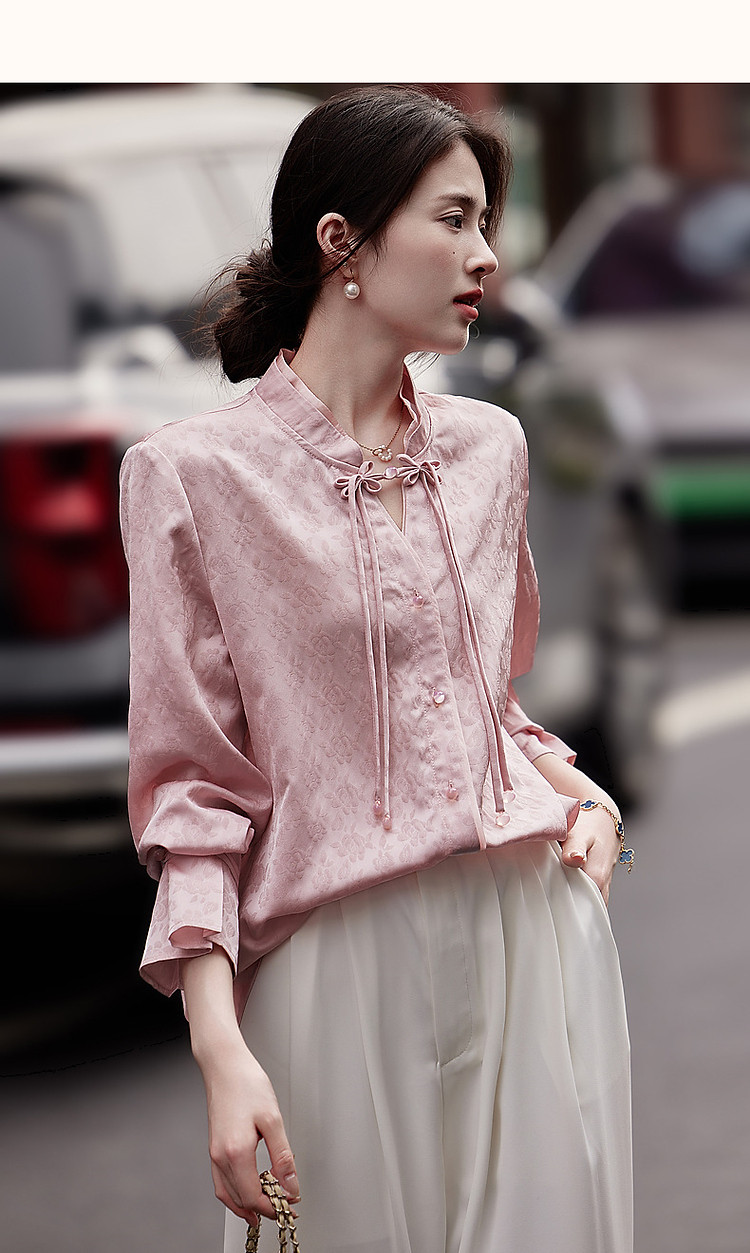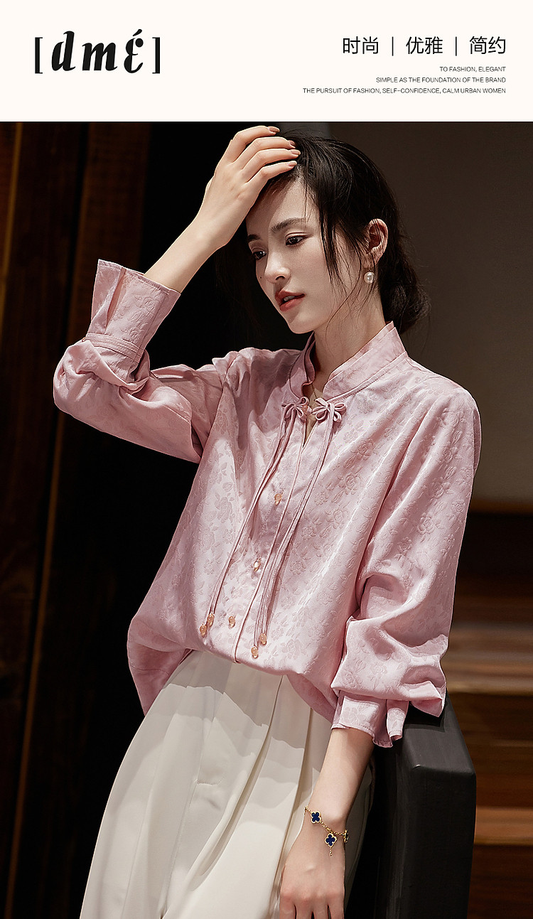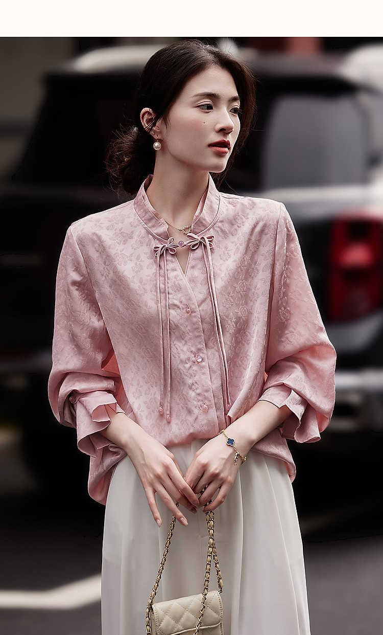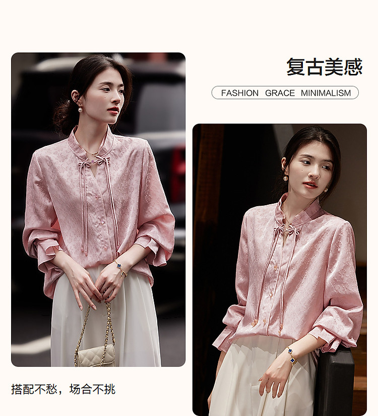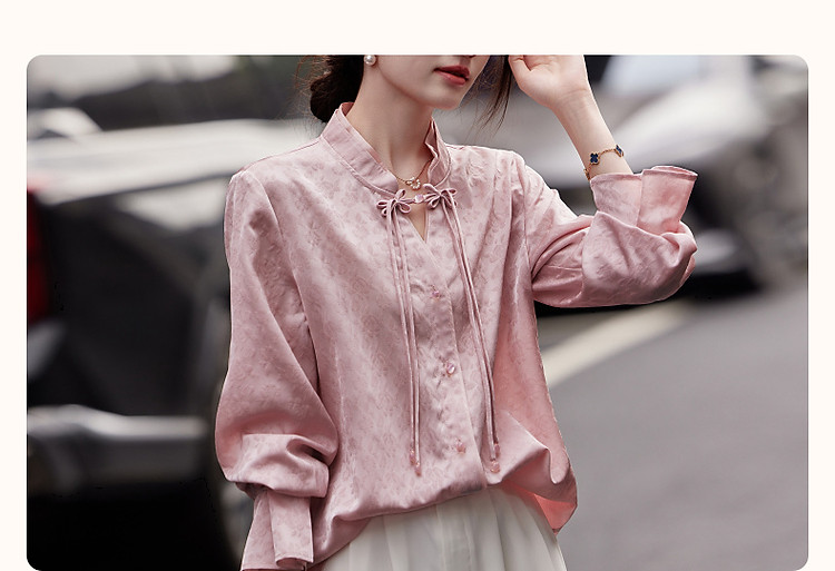 商品名称:【温柔预报员】秋国风新中式立领盘扣衬衫荷叶边提花衬衣女上衣 849281