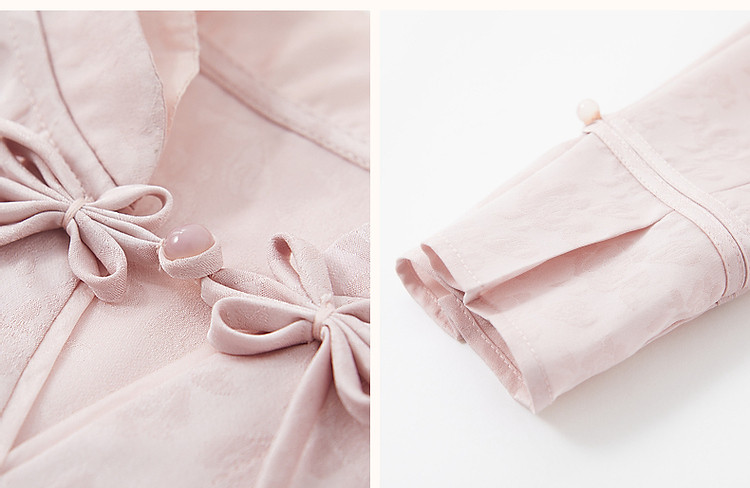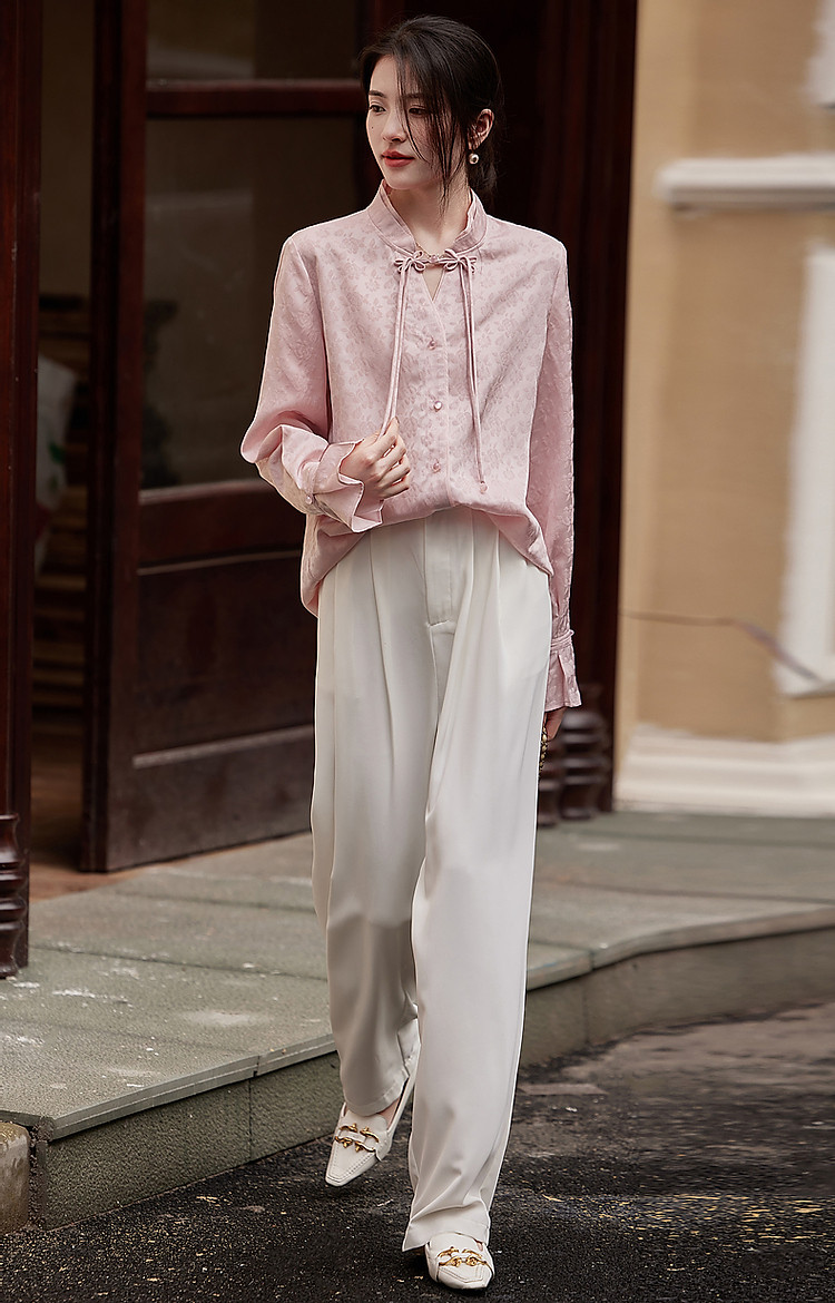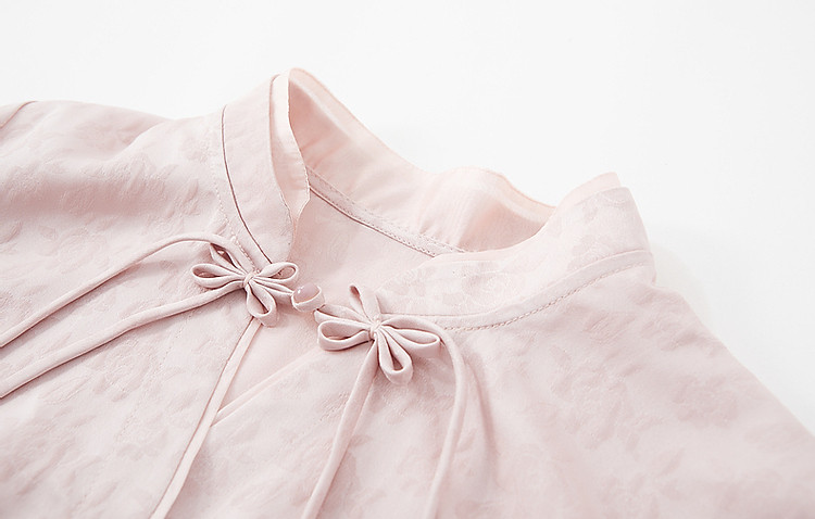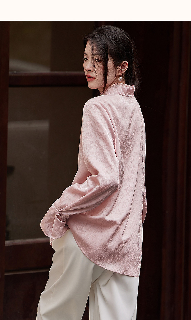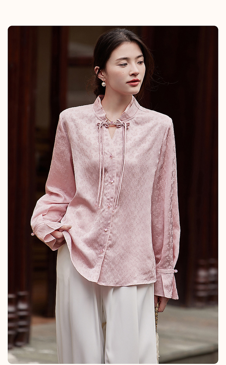 商品名称:【温柔预报员】秋国风新中式立领盘扣衬衫荷叶边提花衬衣女上衣 849281