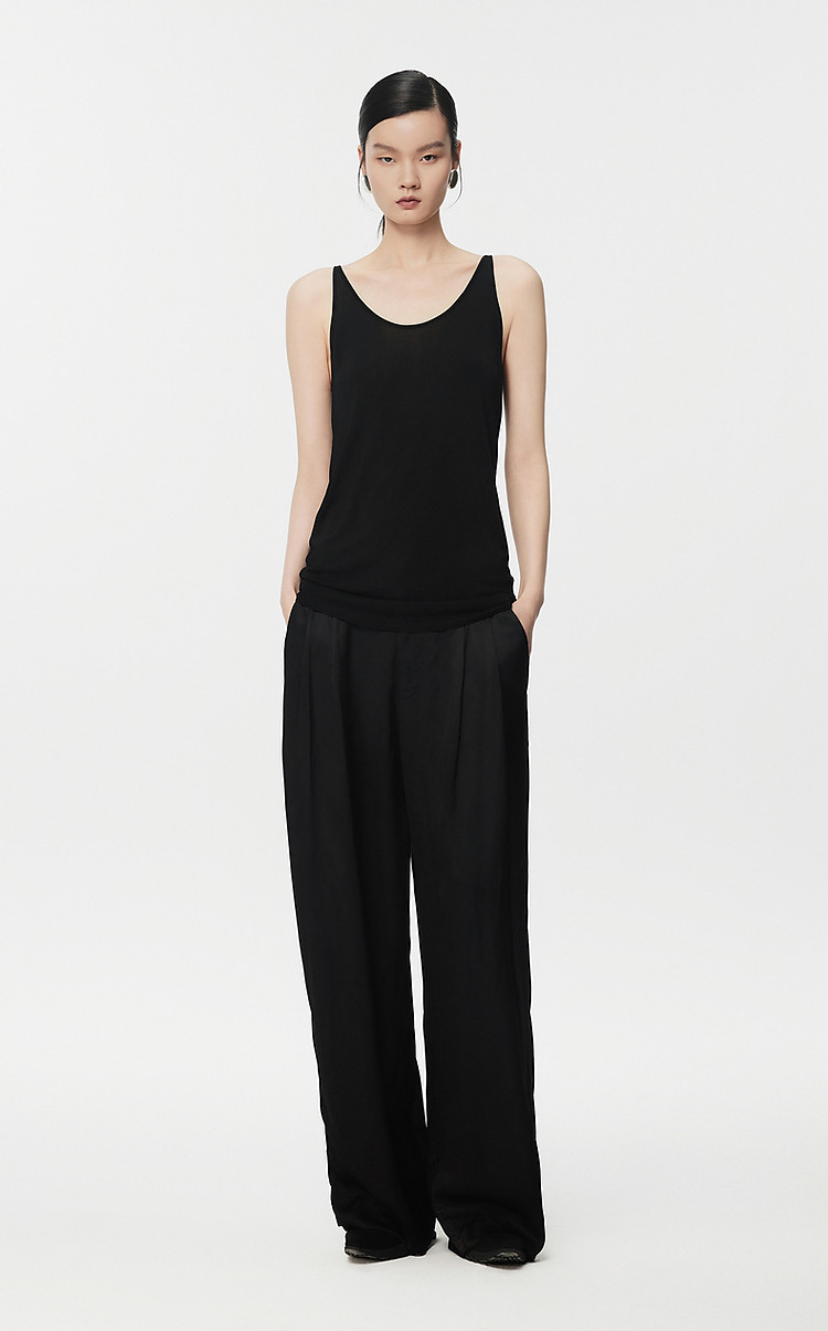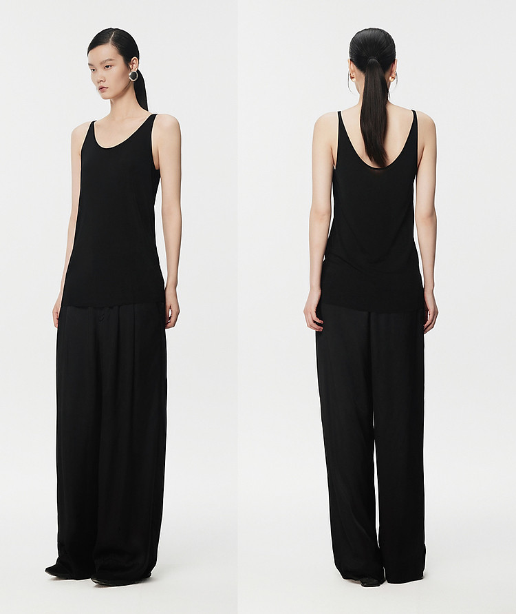 开叉高腰时尚百搭阔腿裤女夏季轻薄宽松垂感直筒休闲裤 630936