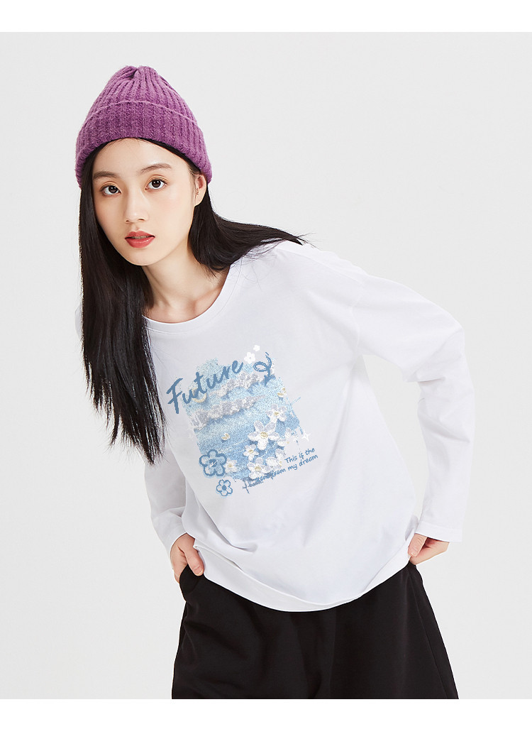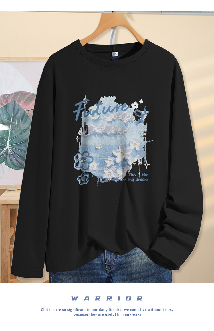 商品名称:【女装重磅棉】春秋纯棉长袖T恤女宽松显瘦休闲百搭上衣女 751123