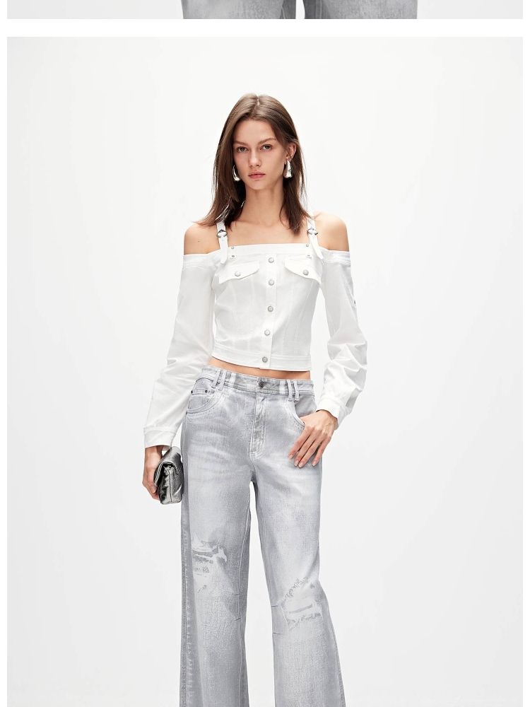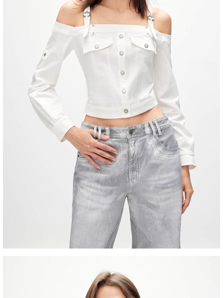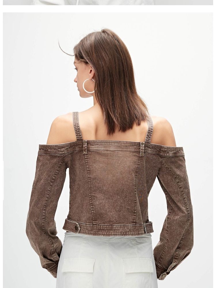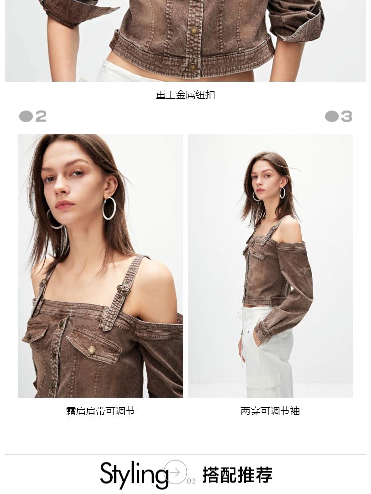 商品名称:【性感辣妹风】春季两穿露肩短款蕾丝衫女 689050