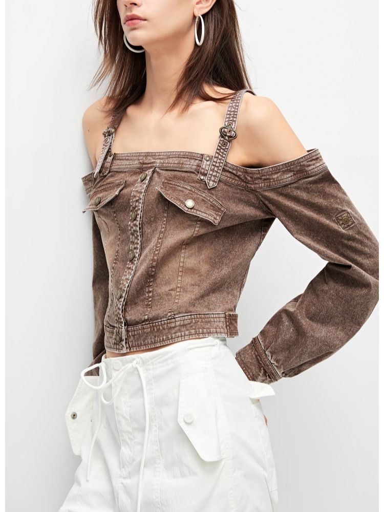 【性感辣妹风】春季两穿露肩短款蕾丝衫女 689050