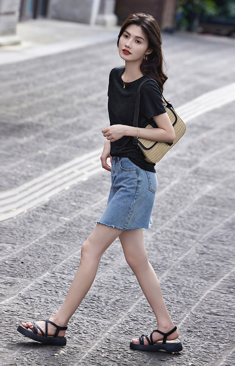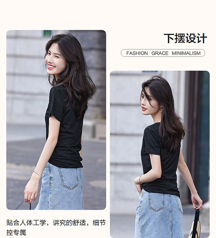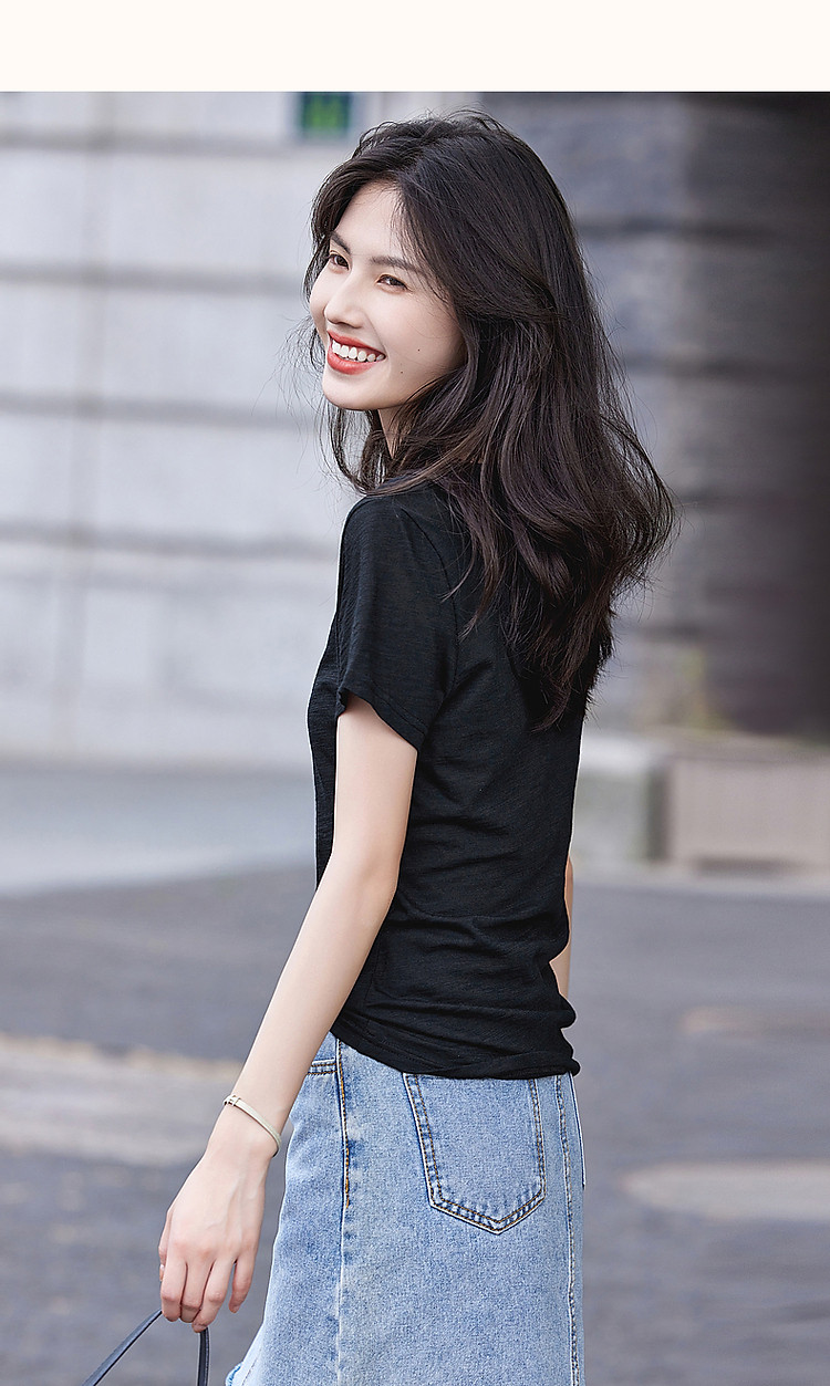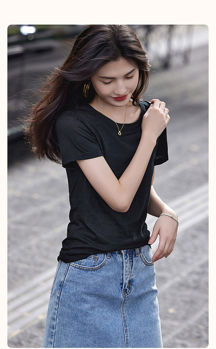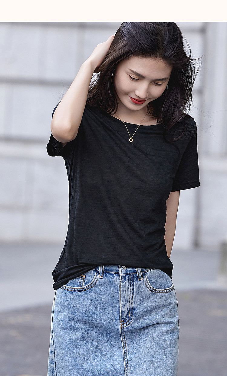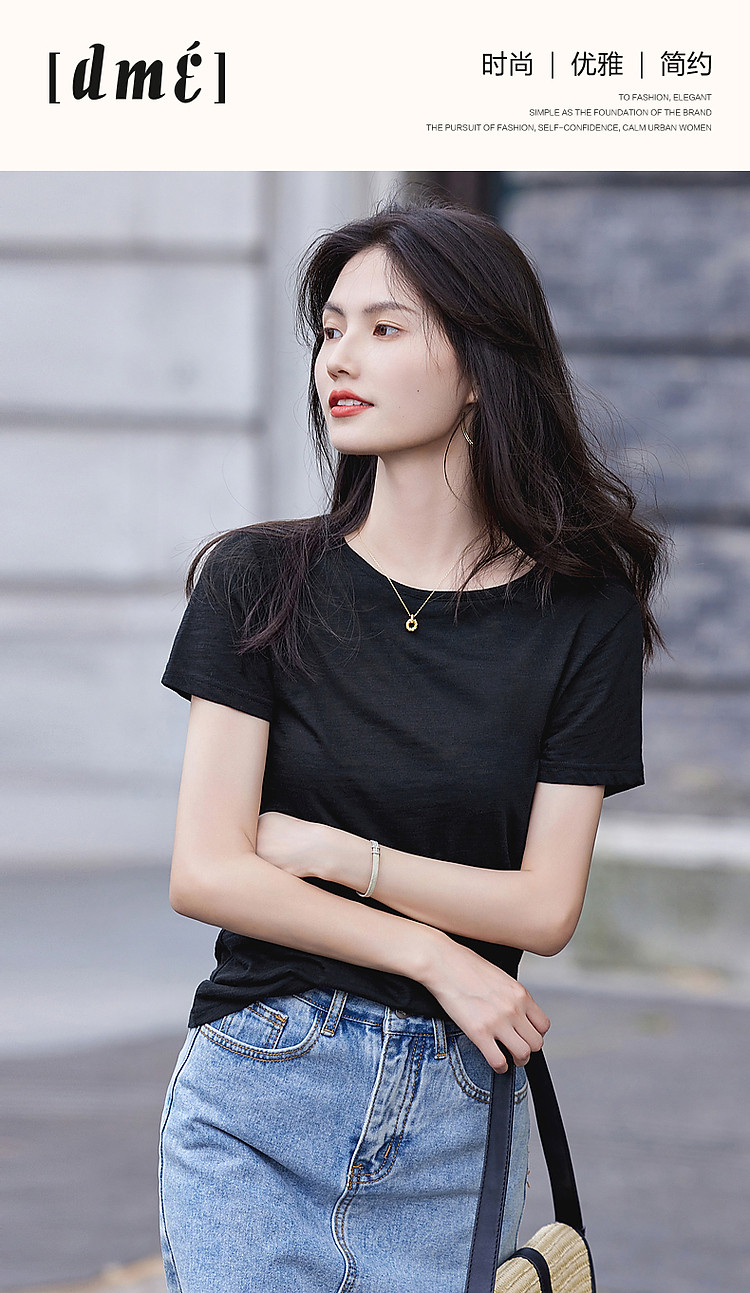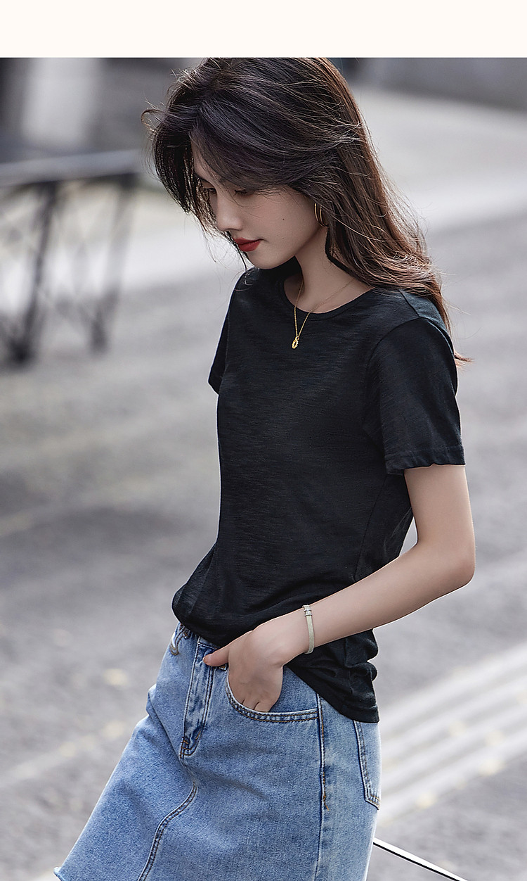 商品名称:【简而不凡】轻薄款夏圆领修身短袖弹力清凉休闲女式t恤 666433