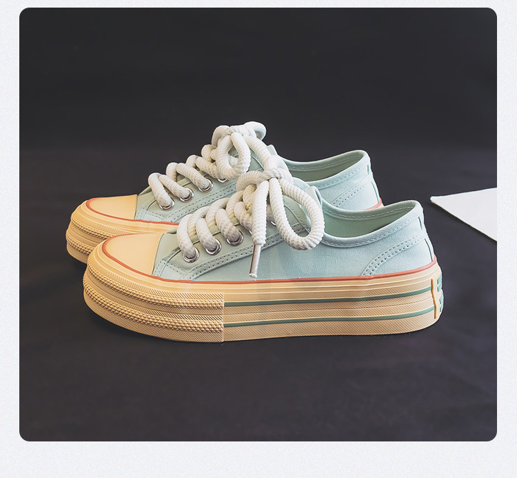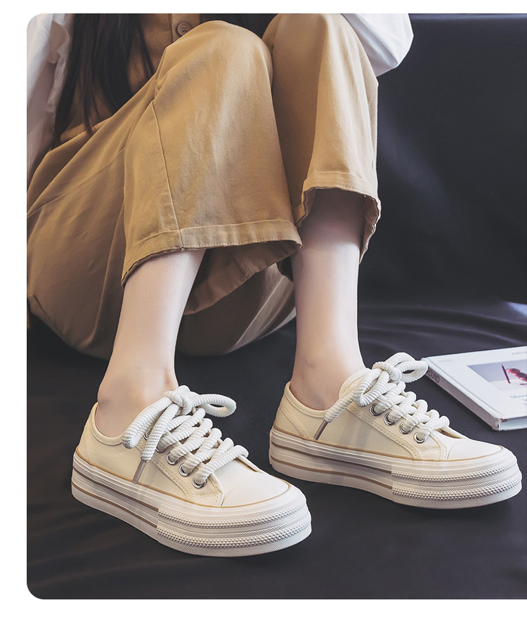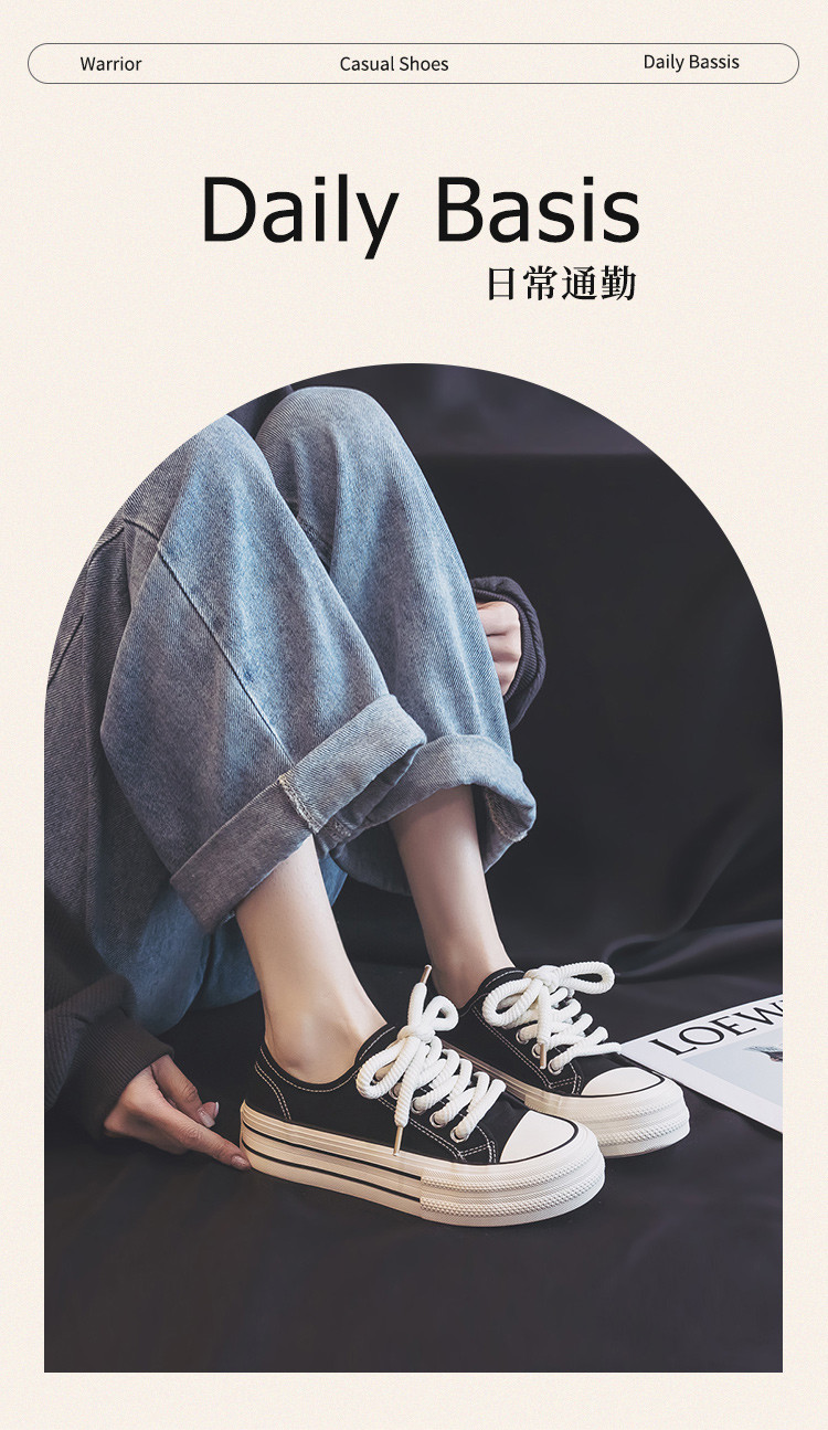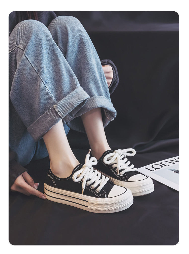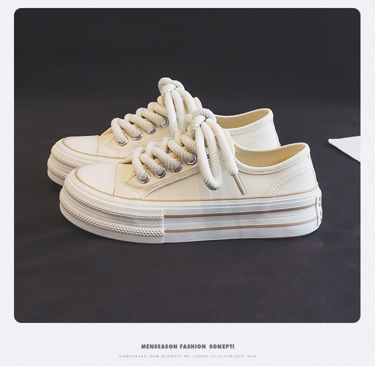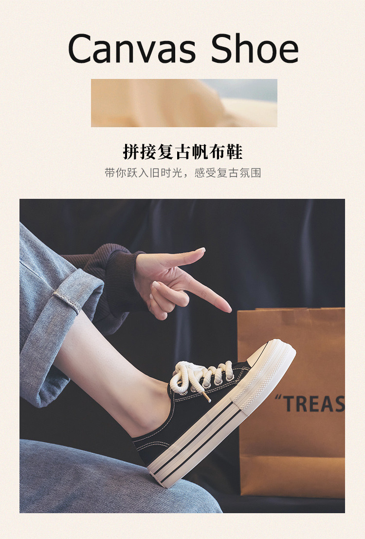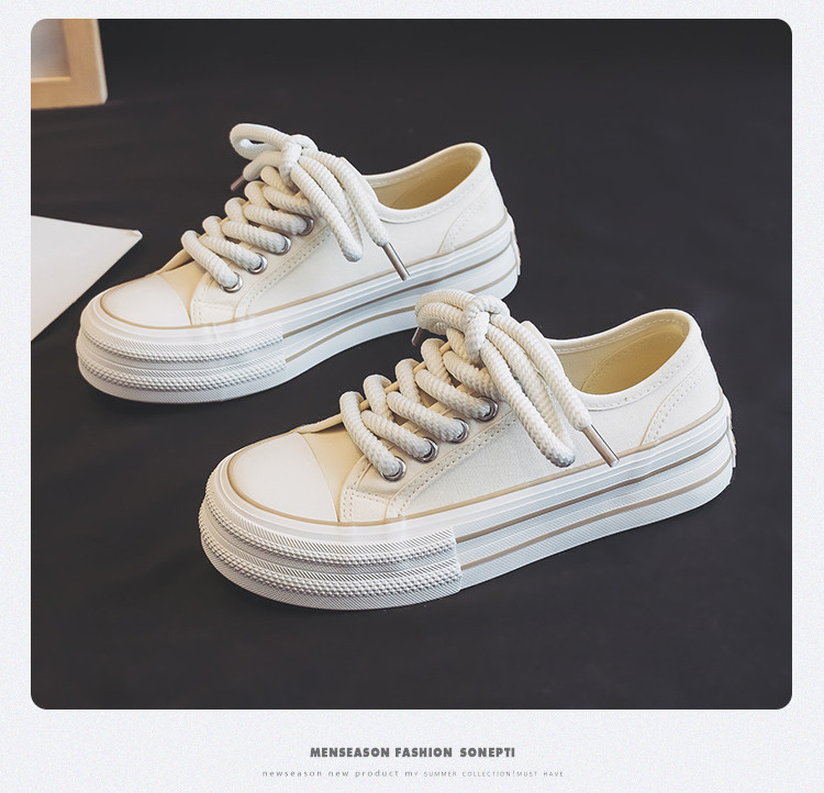 商品名称:低帮帆布鞋女款爆款厚底增高休闲鞋松糕百搭简约学生板鞋 127252