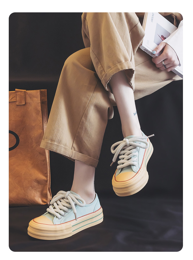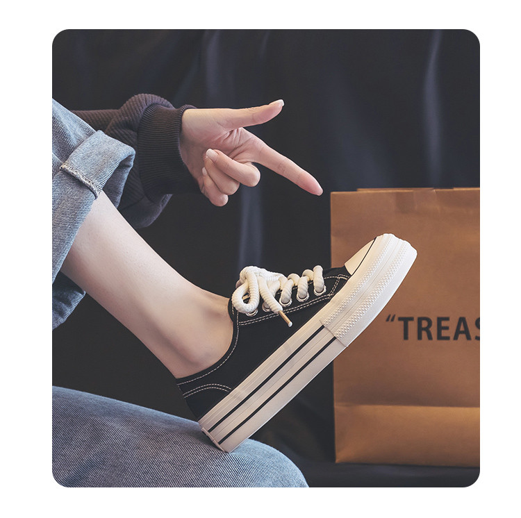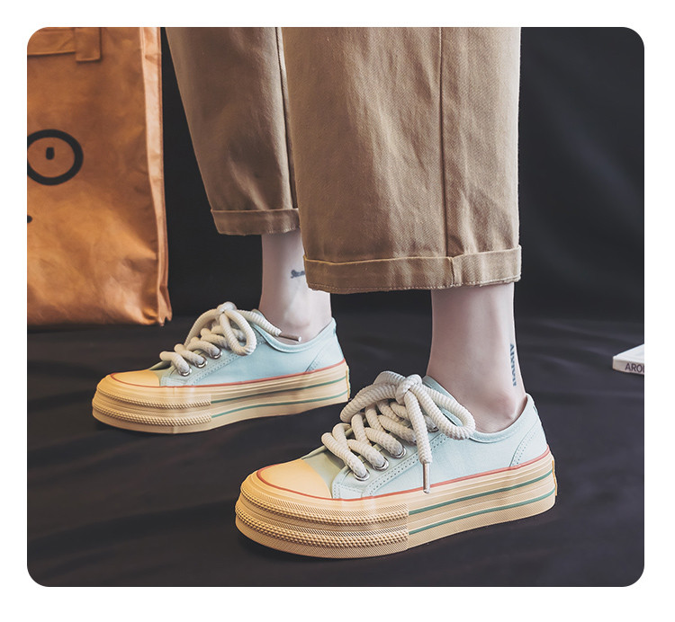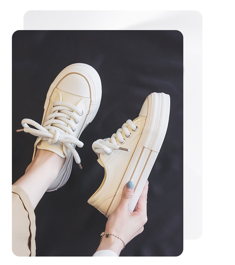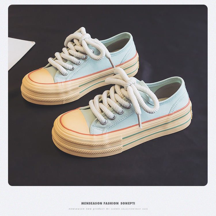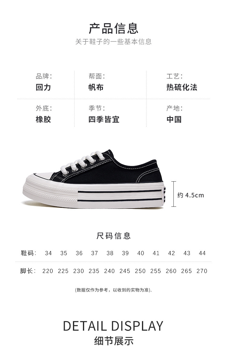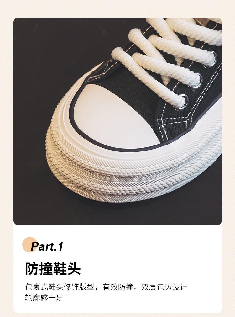 商品名称:低帮帆布鞋女款爆款厚底增高休闲鞋松糕百搭简约学生板鞋 127252