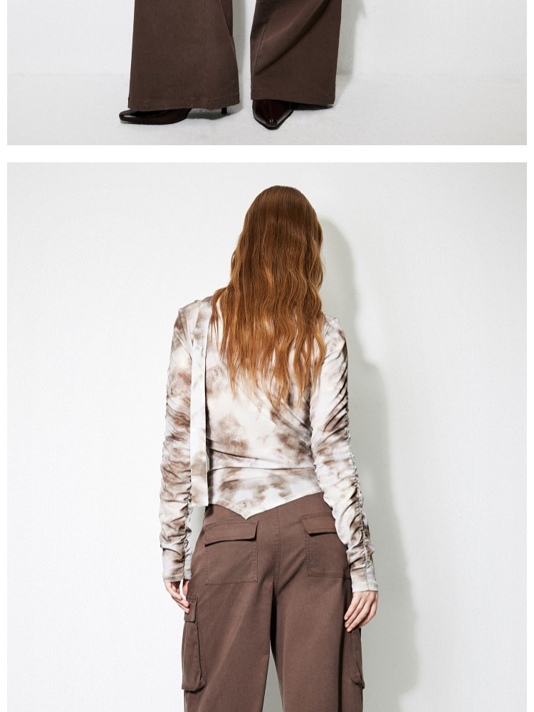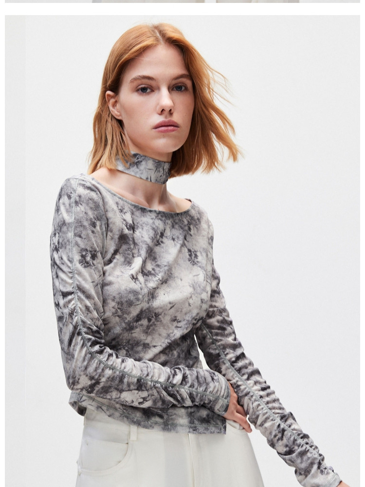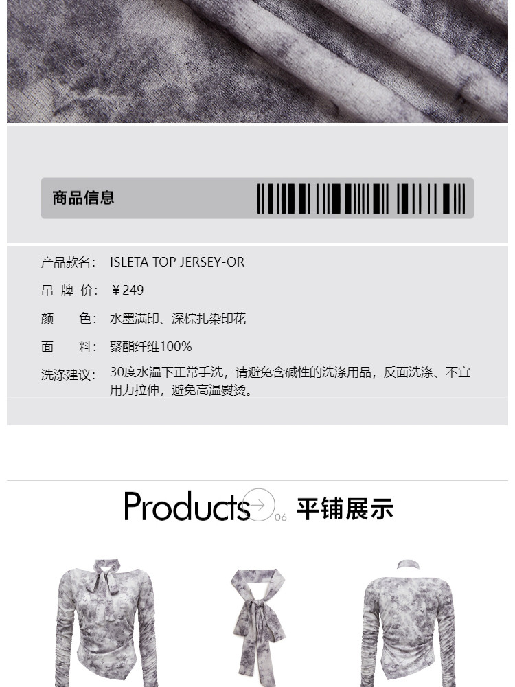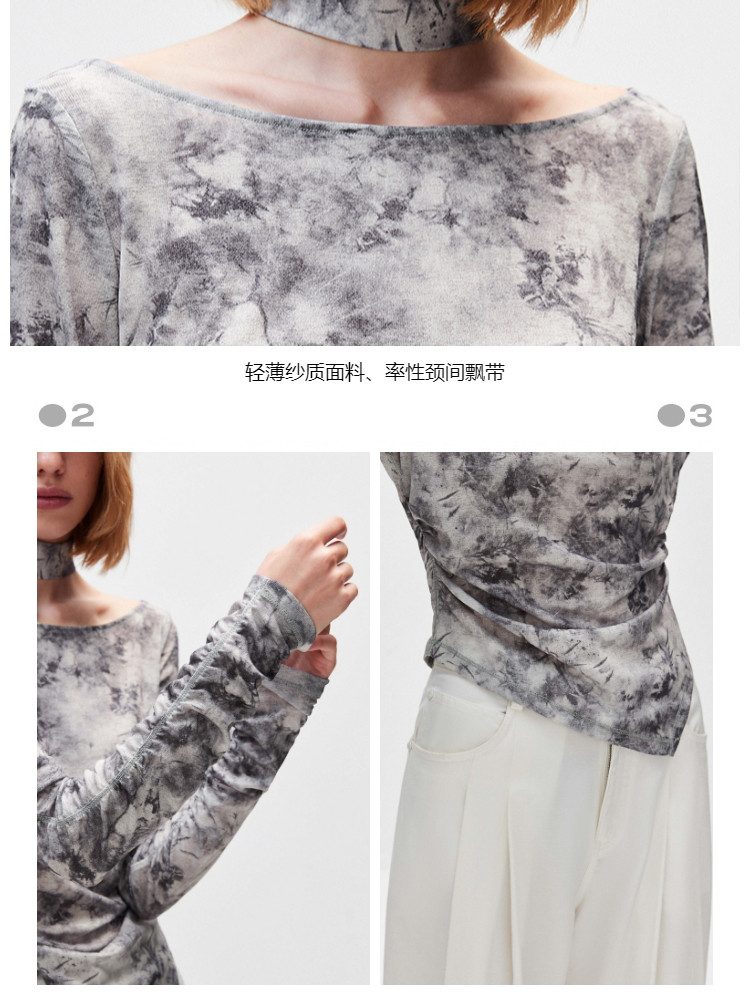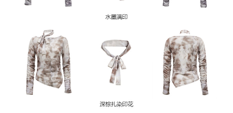 商品名称:【修身短款】夏季印花飘带不对称轻薄长袖T恤女 445466