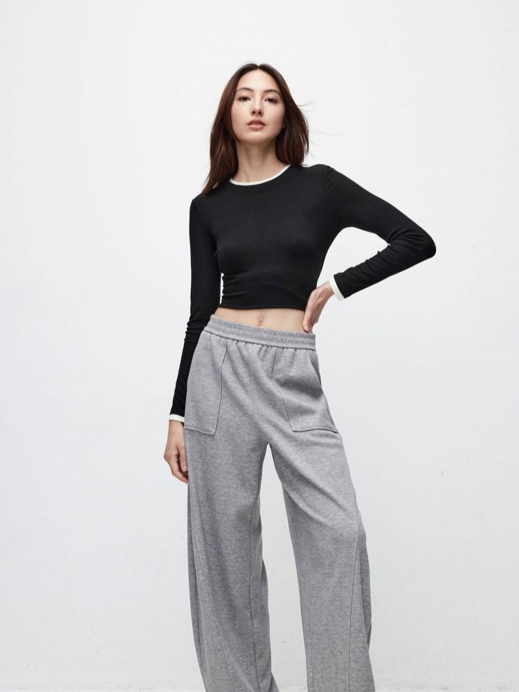 商品名称:【简约】春季纯色针织阔腿香蕉裤休闲裤女 381850