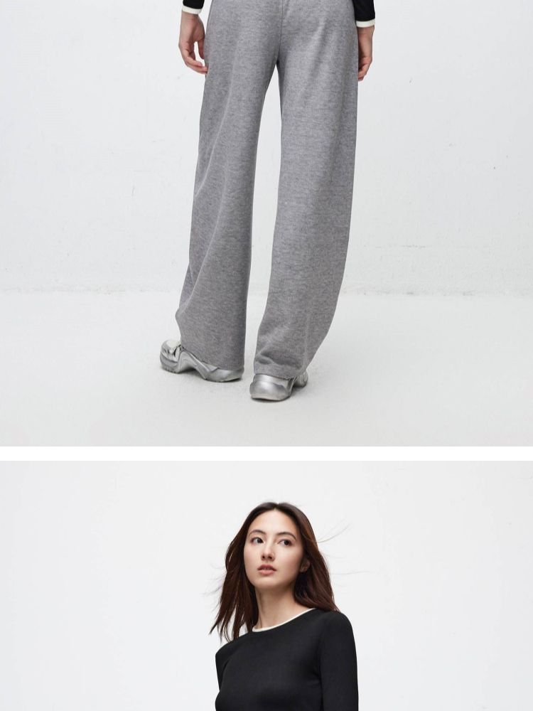 【简约】春季纯色针织阔腿香蕉裤休闲裤女 381850