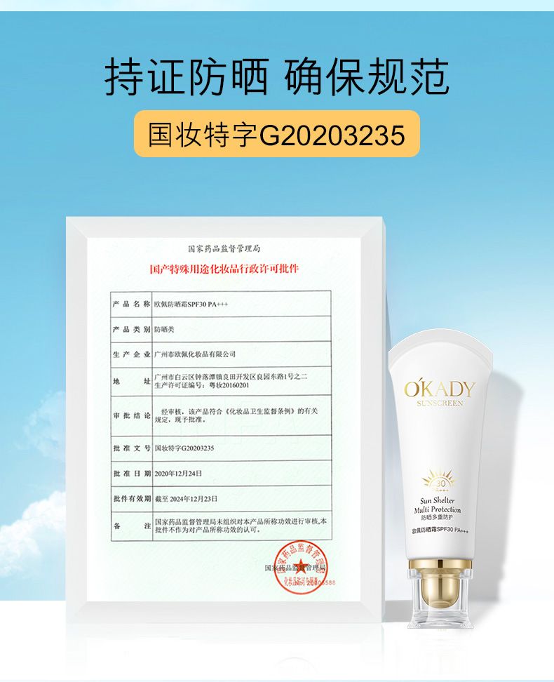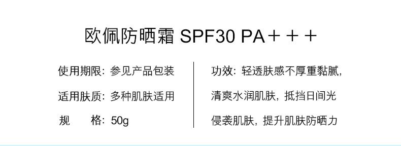 商品名称:欧佩防晒霜SPF30 PA+++ 50g