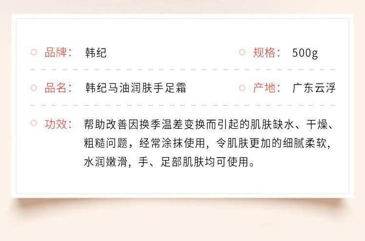 商品名称:Hankey/韩纪 马油润肤手足霜500ml
