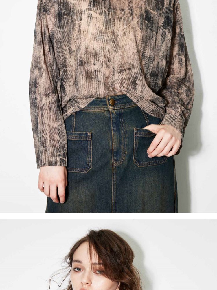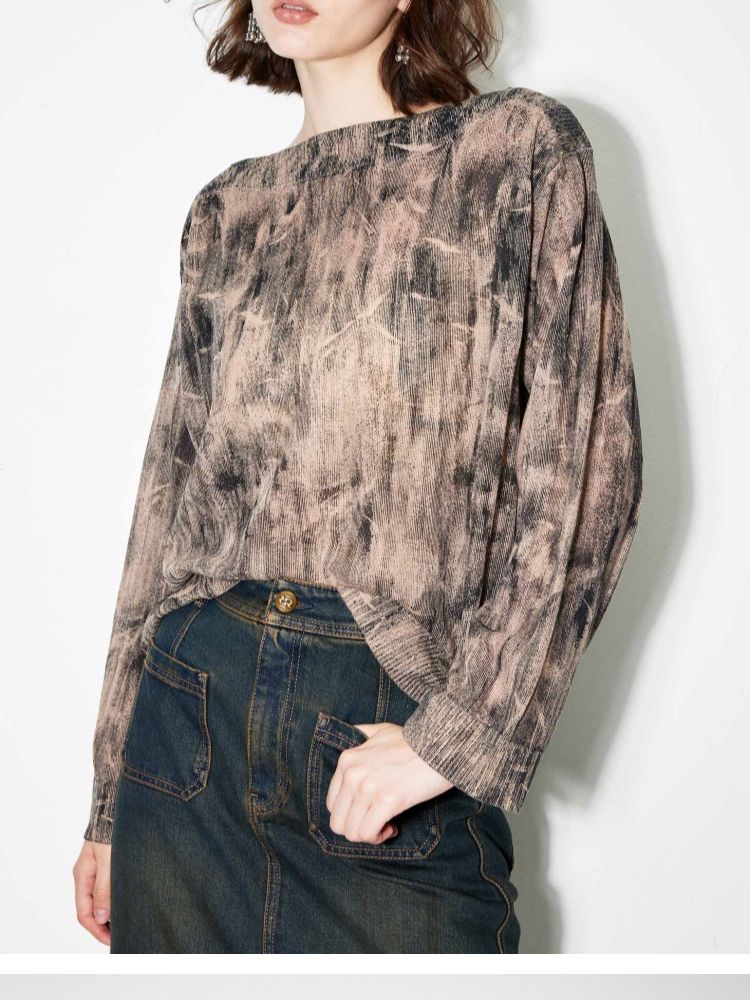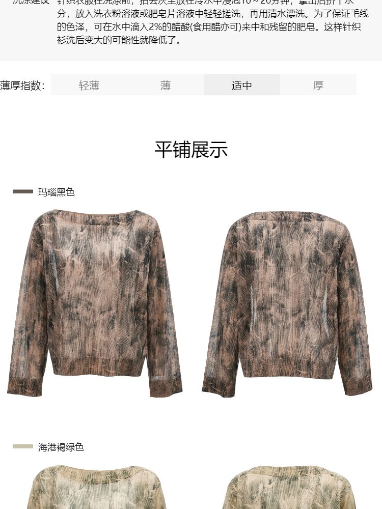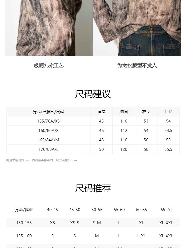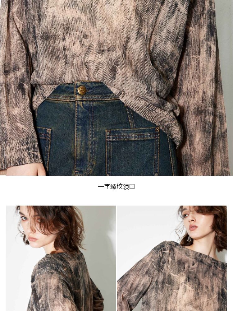 商品名称:【螺纹扎染】春季复古宽松螺纹扎染一字领针织衫女 001242