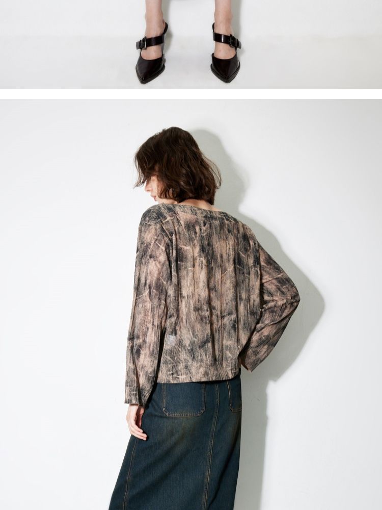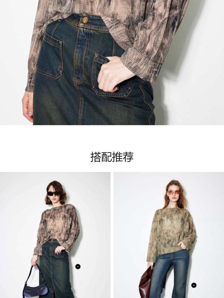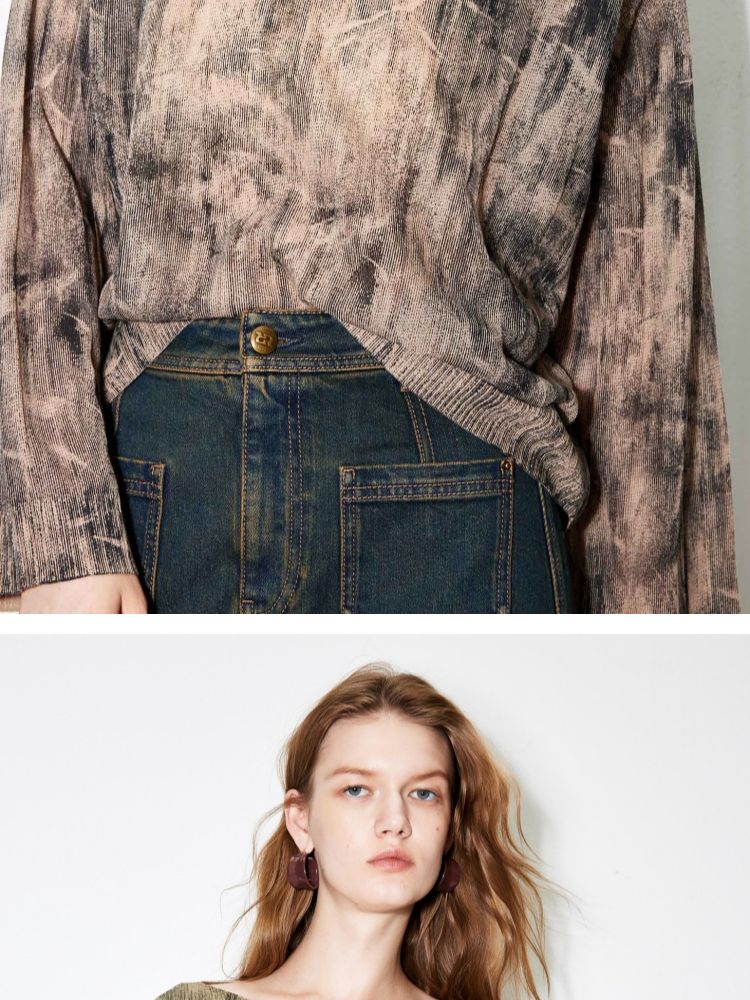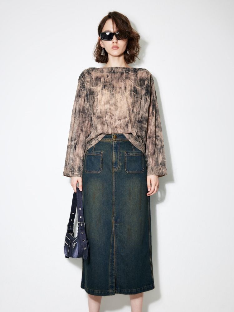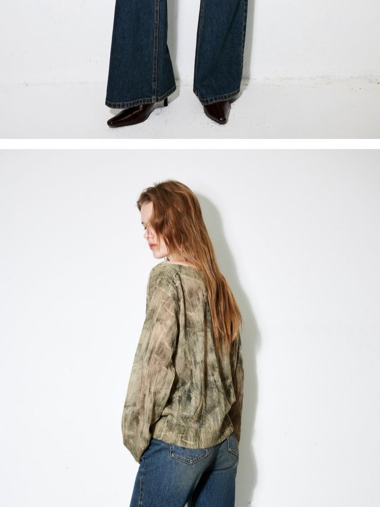 商品名称:【螺纹扎染】春季复古宽松螺纹扎染一字领针织衫女 001242