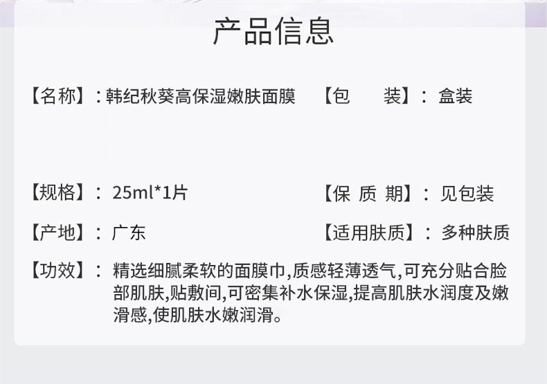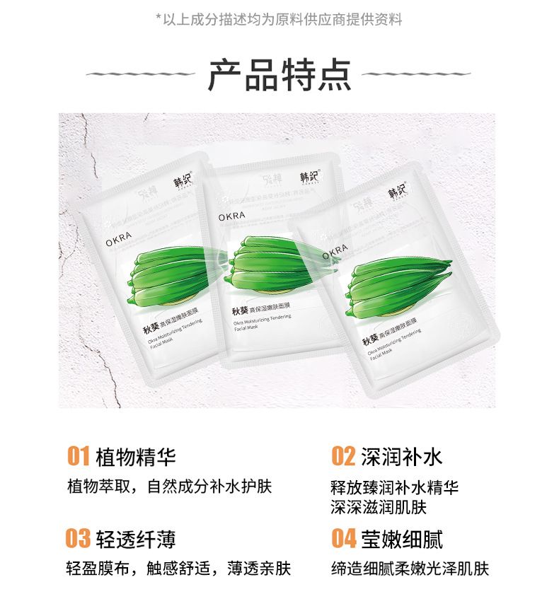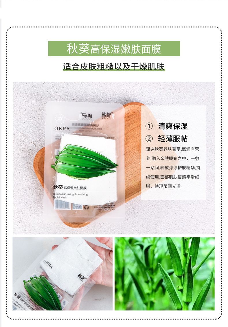 商品名称:Hankey/韩纪 秋葵高保湿嫩肤面膜25ML*10片/盒