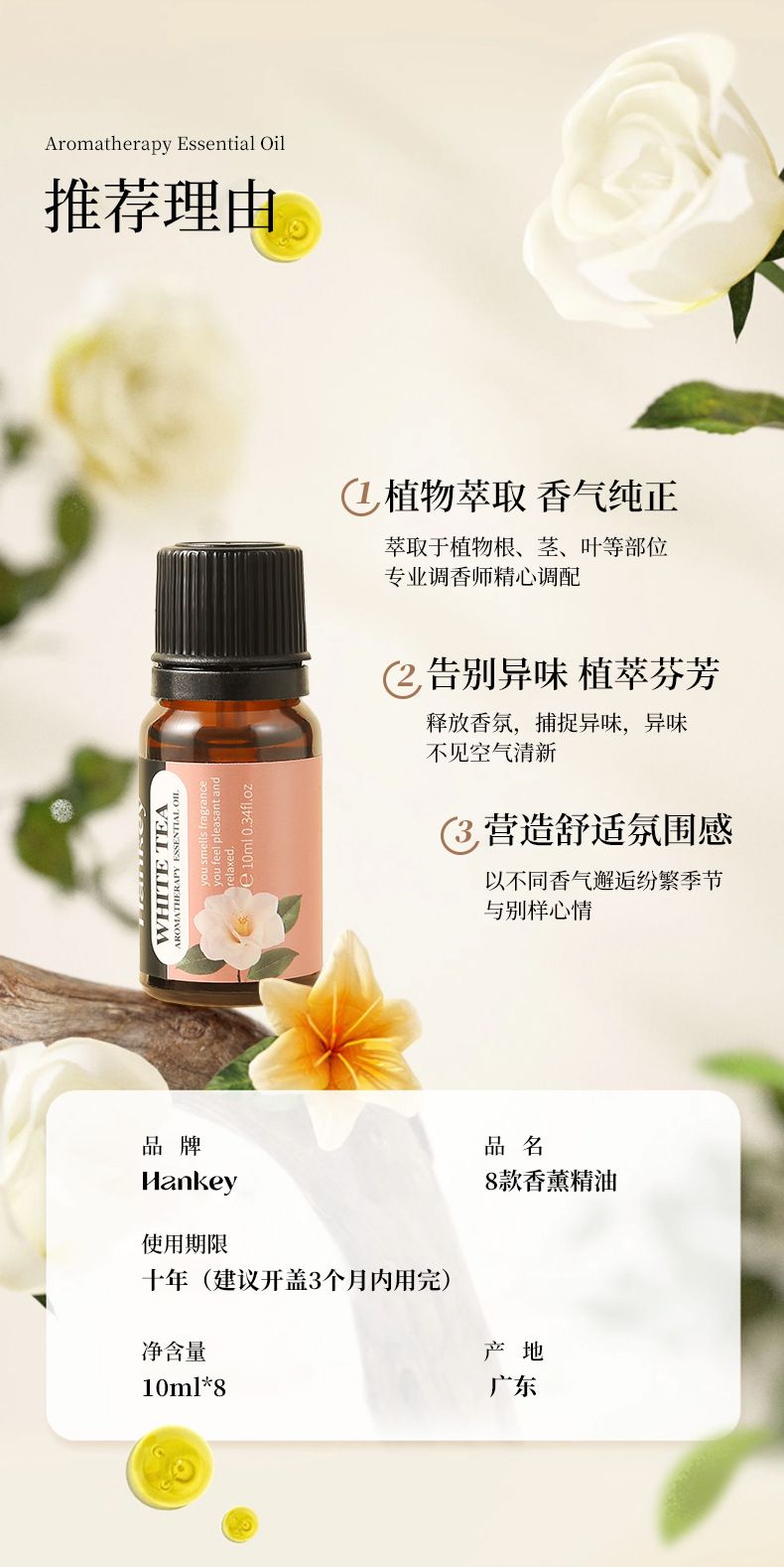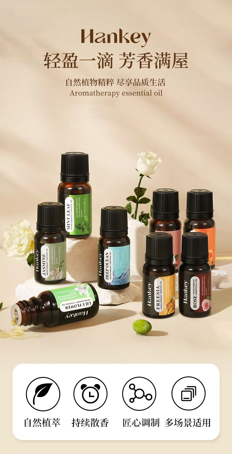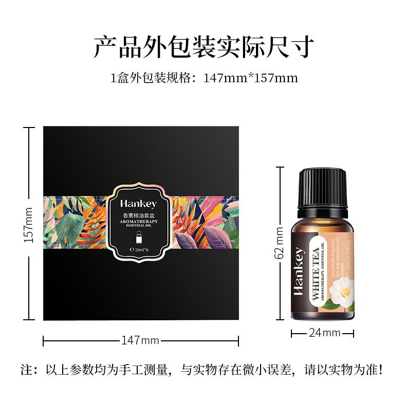 商品名称:Hankey/韩纪 水溶性香薰精油套盒10ml*8 茉莉玫瑰甜橙
