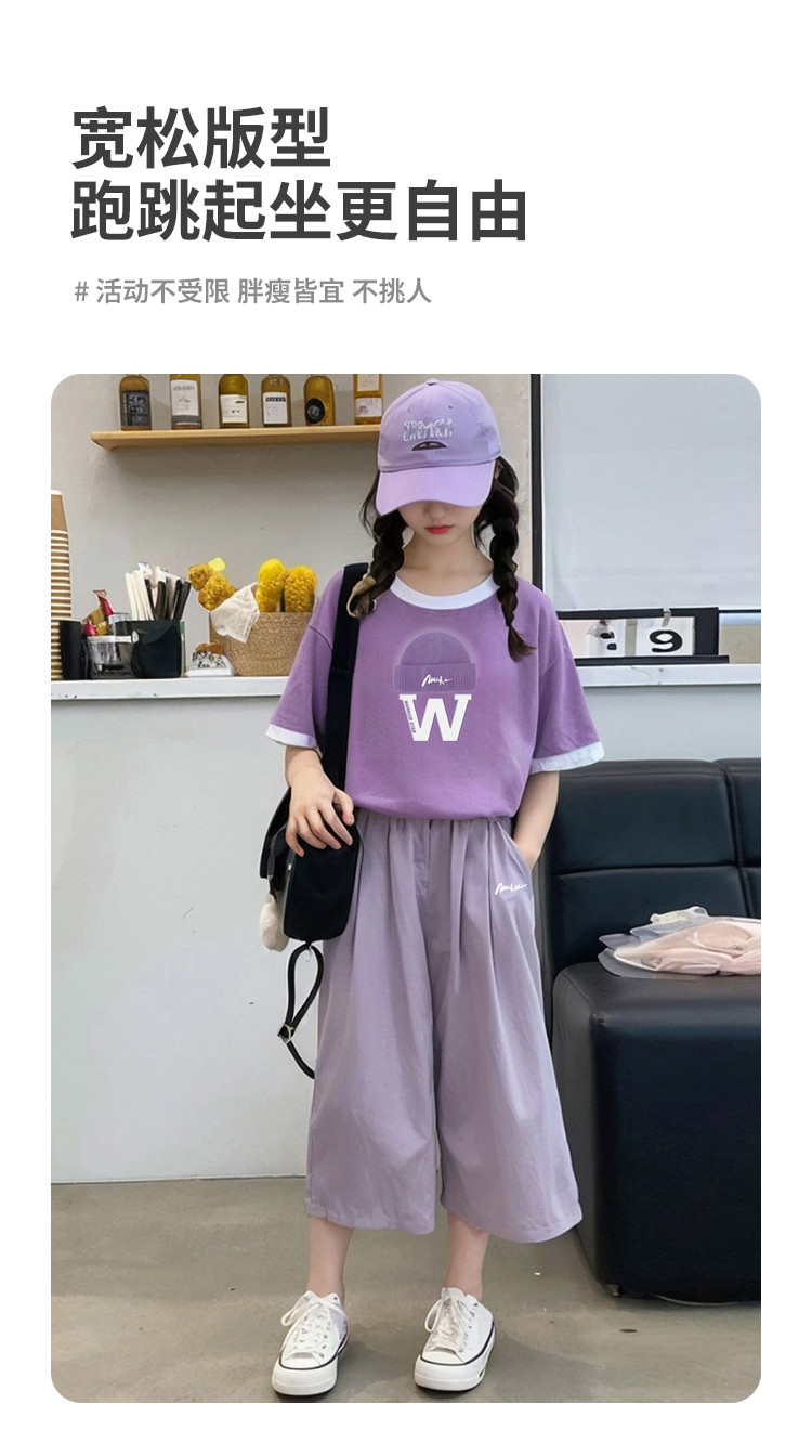 商品名称:童装女大童夏装套装24儿童夏季撞色短袖T恤山本裤两件套洋气 912723