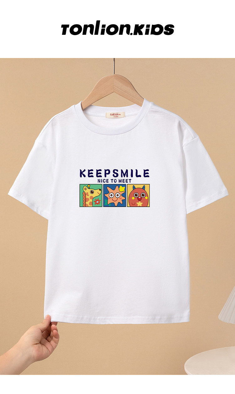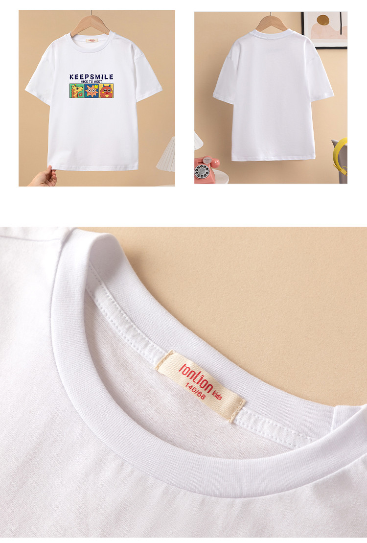 商品名称:童装T恤春秋款时尚儿童短袖衫中大童纯棉亲肤吸汗微落肩短袖上衣 002959