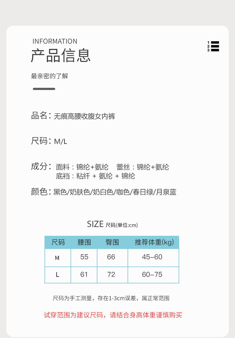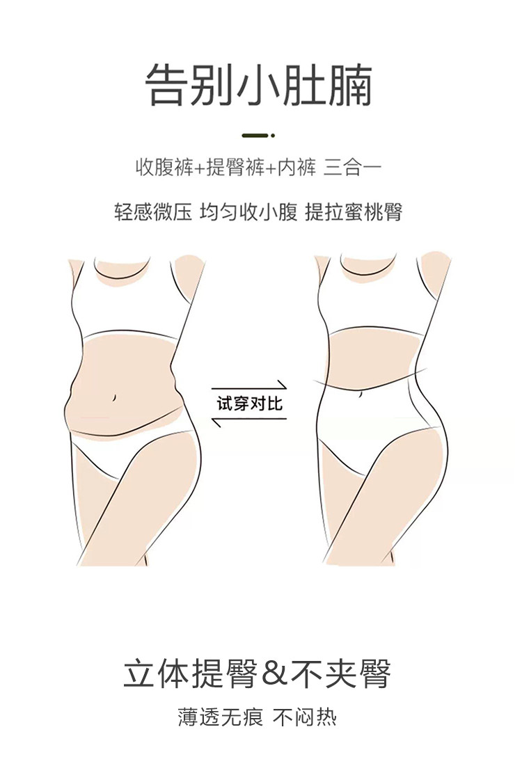商品名称:【透气冰丝】2条无痕高腰收腹提臀舒适束腰收小肚子女士内裤女 920734