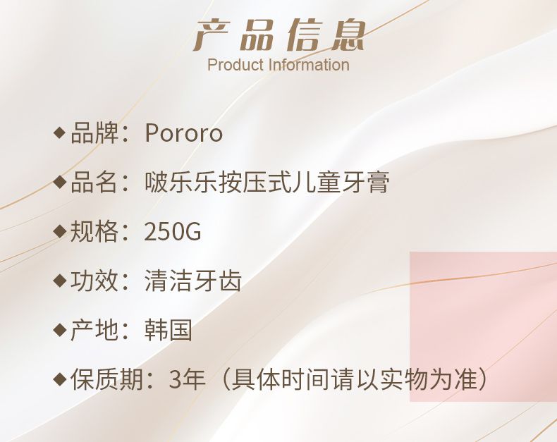 商品名称:啵乐乐 按压式儿童牙膏 250g