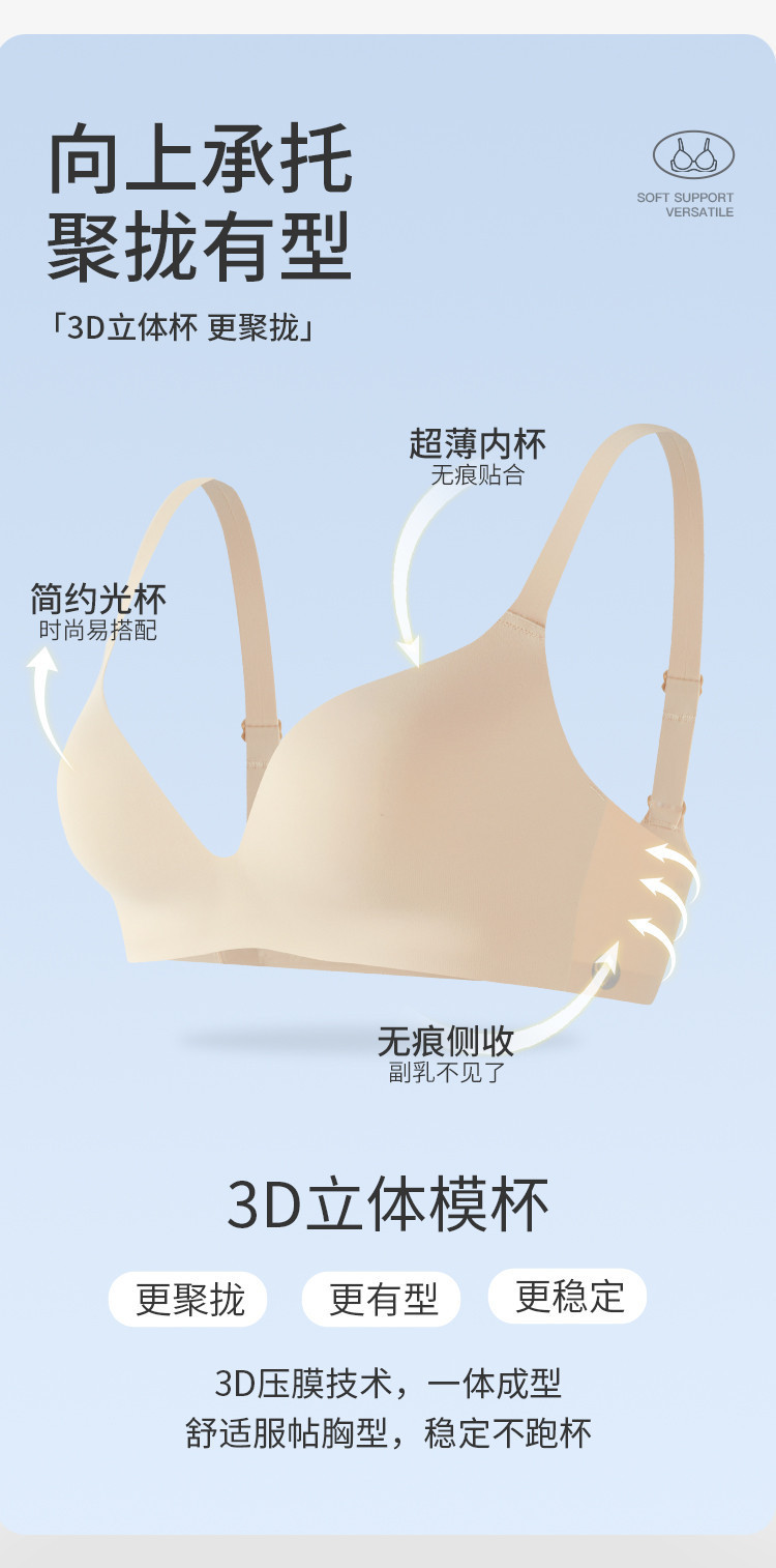 商品名称:【小胸专属】内衣女无钢圈光面无痕收副乳裸感美背一体文胸罩女士 963915