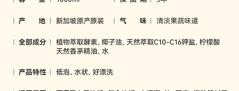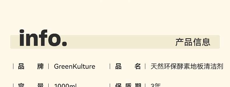 商品名称:新加坡 植物公式(GreenKulture)天然酵素地板清洁液 1000ml/瓶