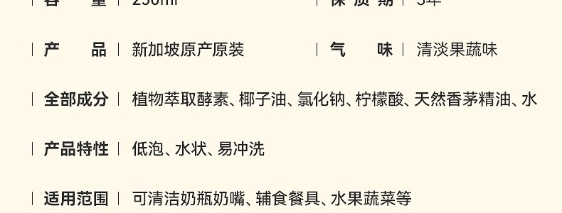 商品名称:新加坡 植物公式(GreenKulture)餐具果蔬清洁液 250ml/瓶