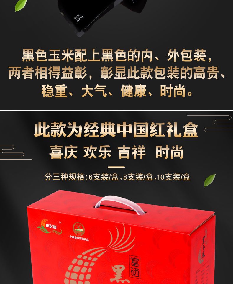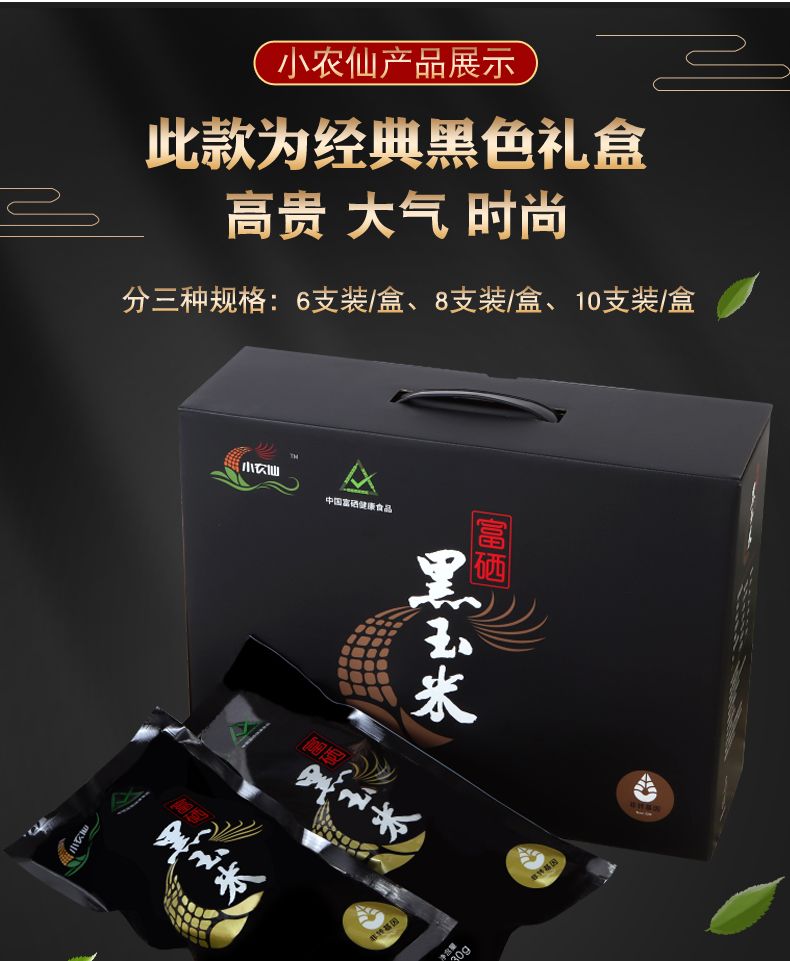 商品名称:小 农 仙 富 硒 黑 玉 米 系 列 8支/10支装/盒(黑色/红色礼盒随机发)