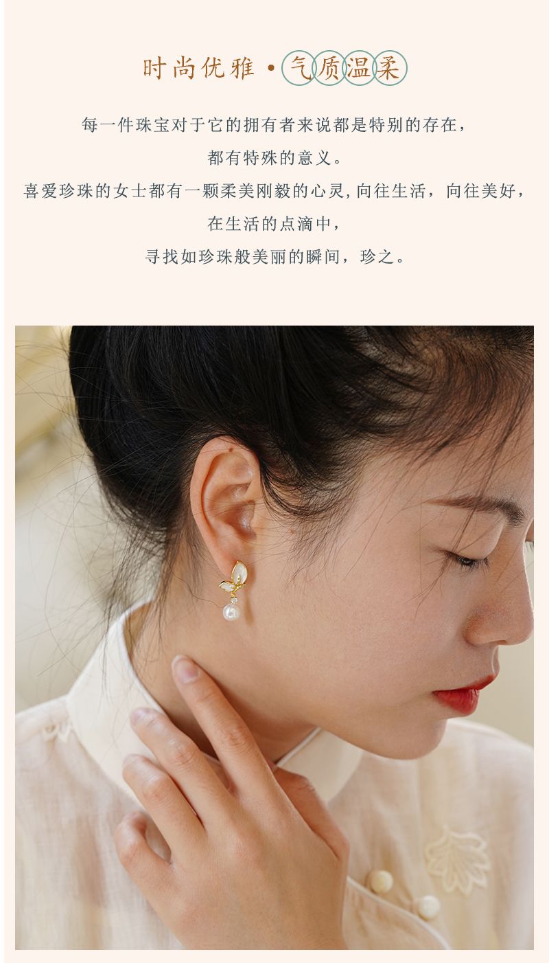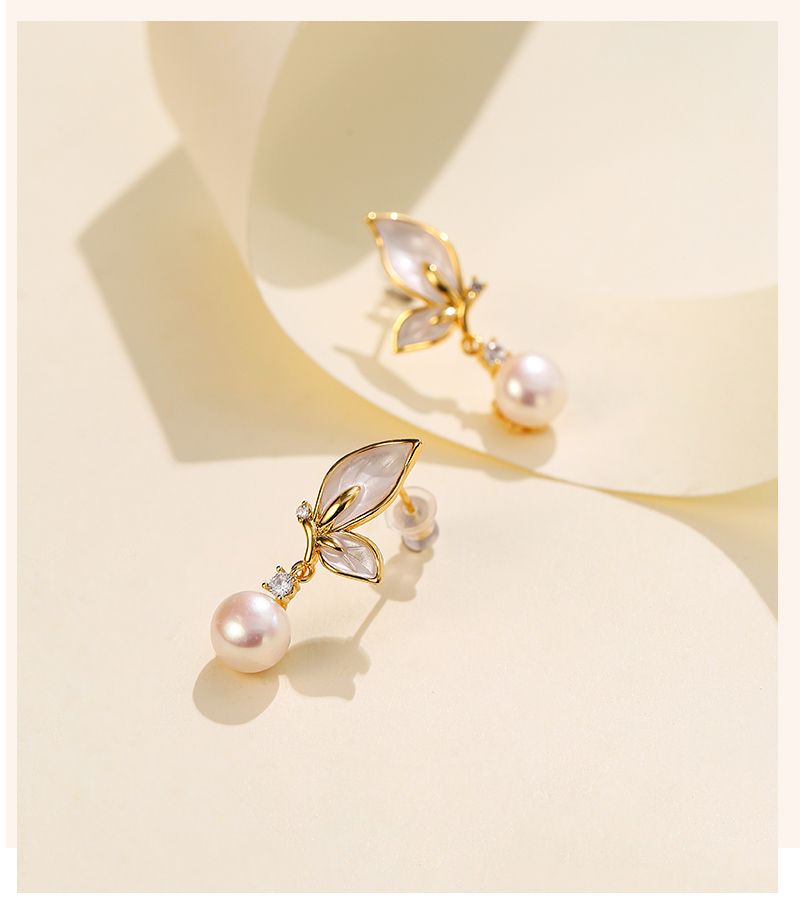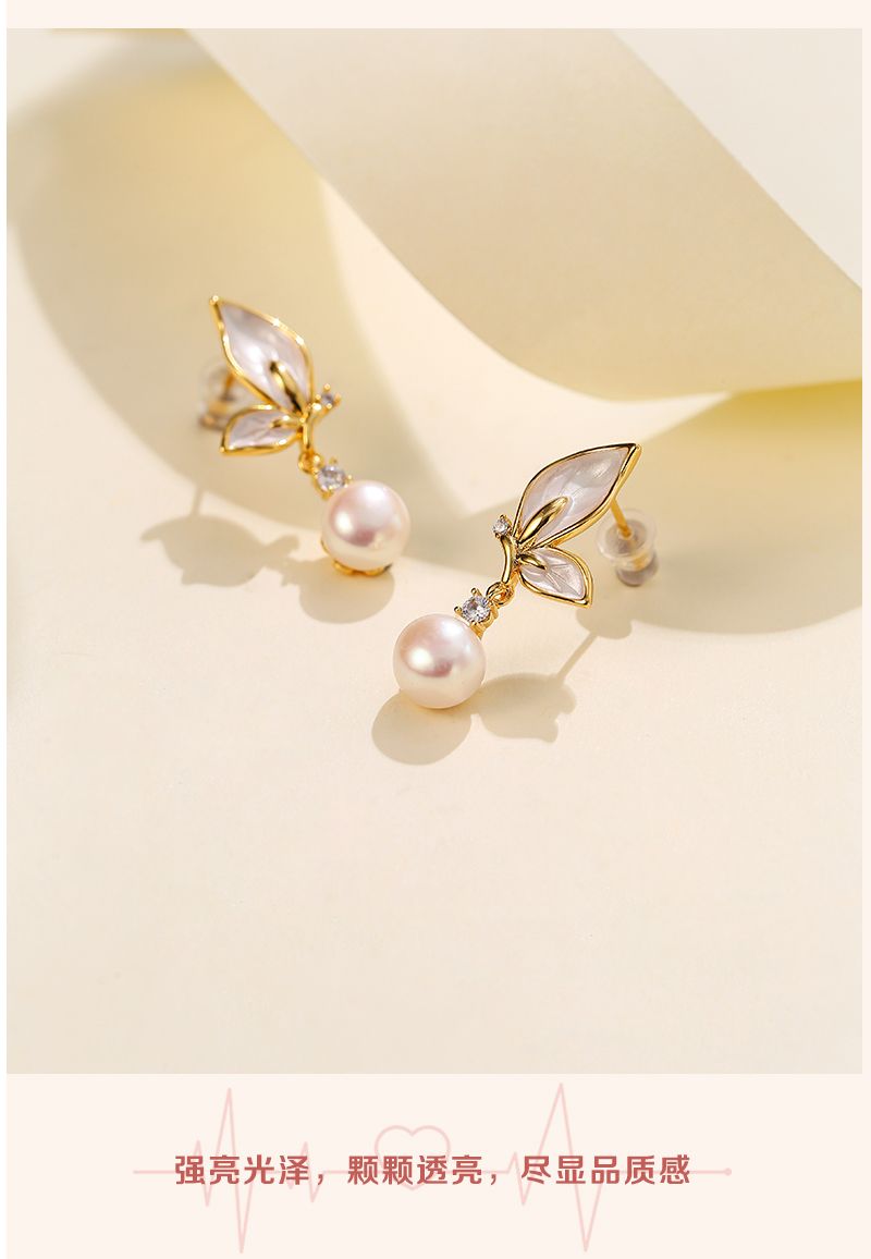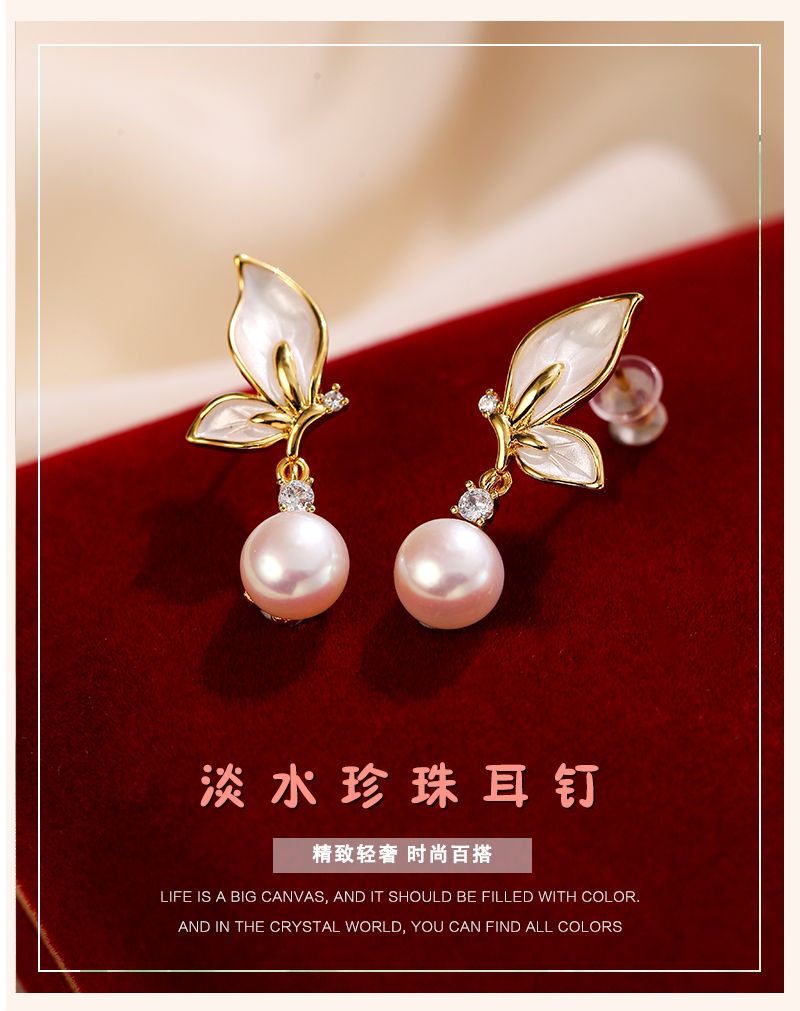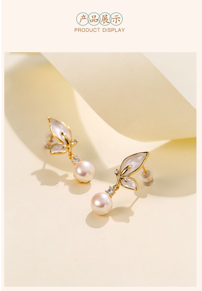 商品名称:慕梵 仙仙珐琅工艺拉丝蝴蝶淡水珍珠耳钉