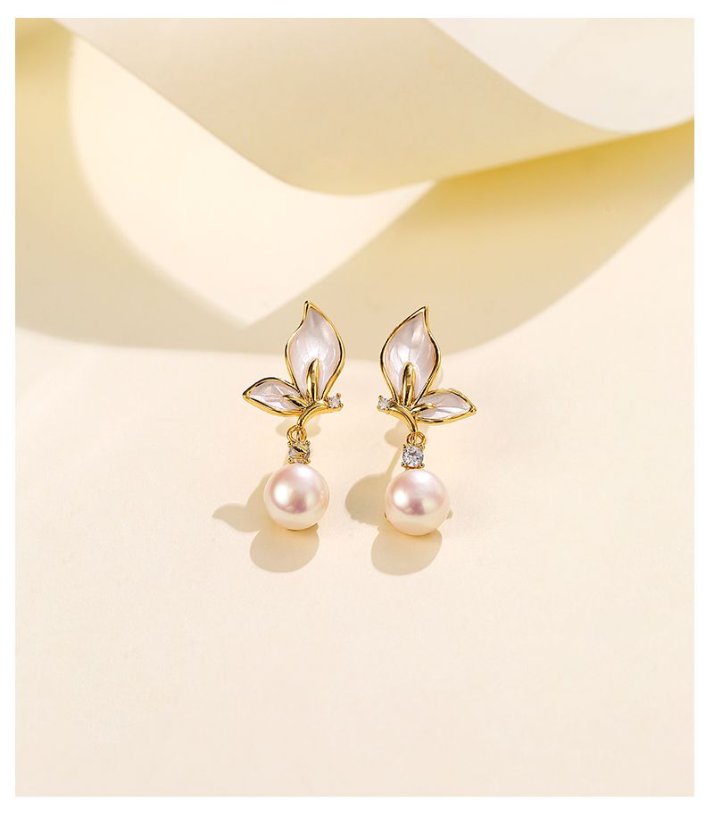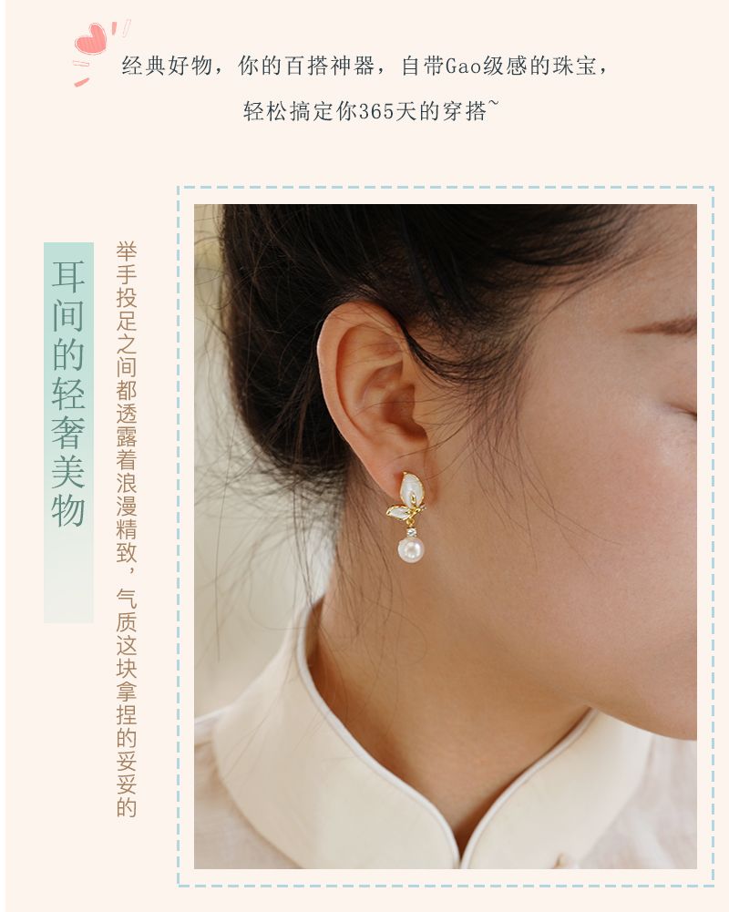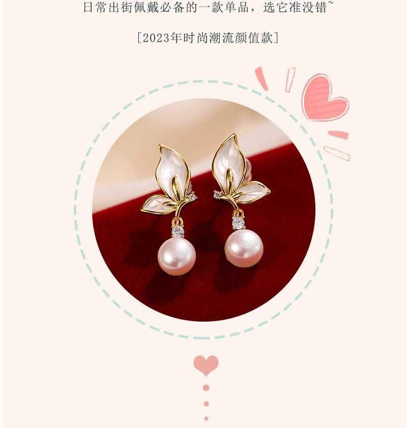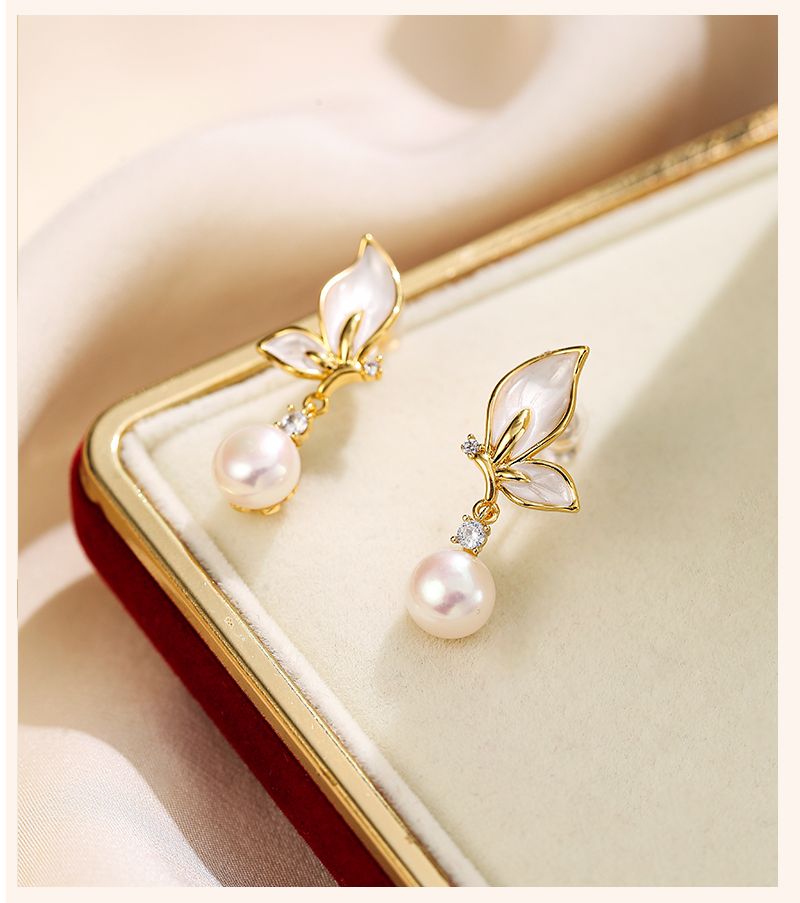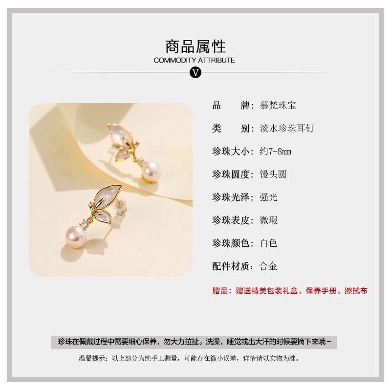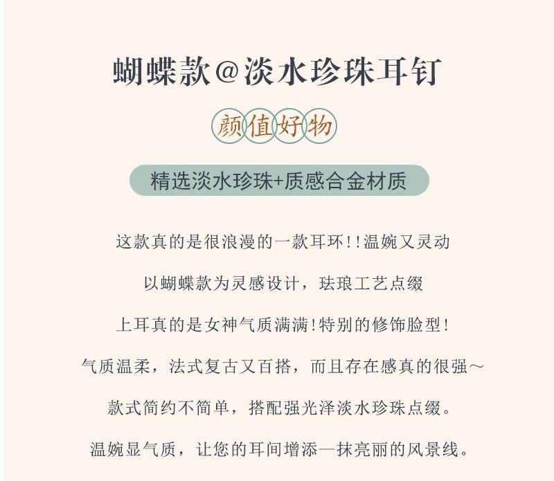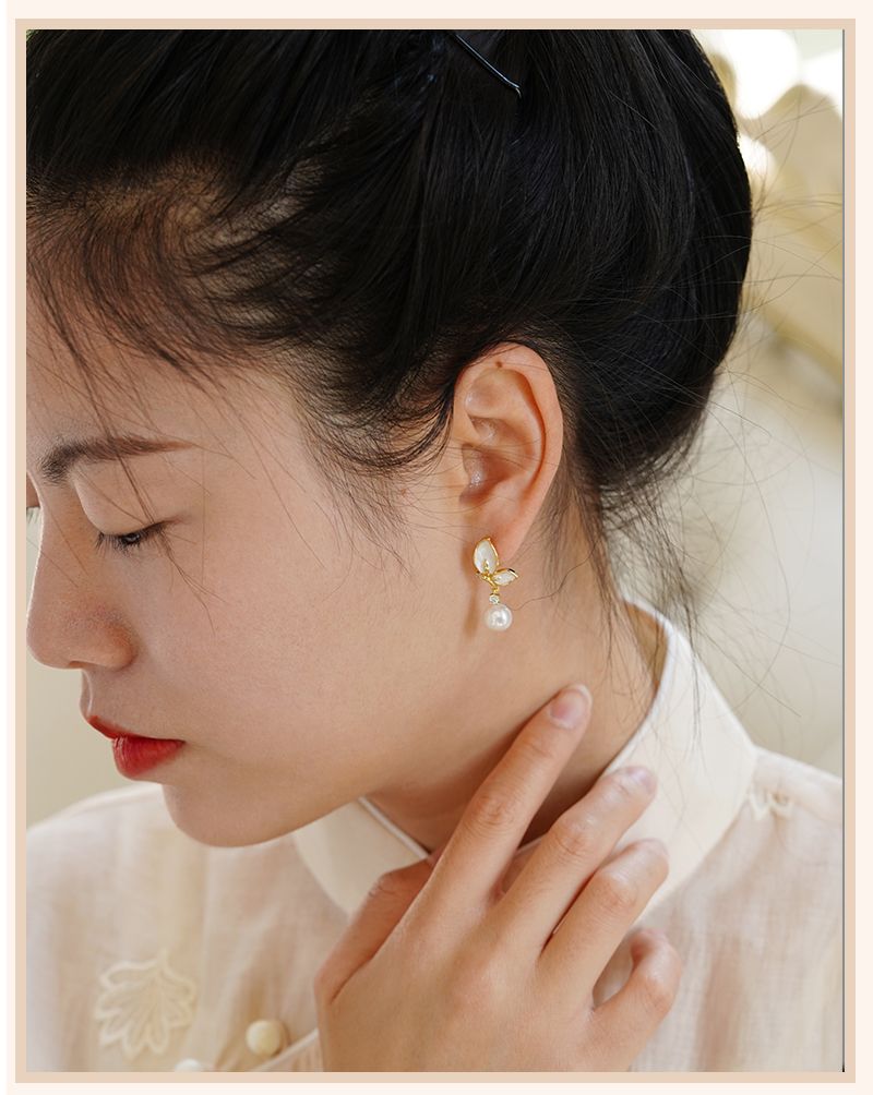 商品名称:慕梵 仙仙珐琅工艺拉丝蝴蝶淡水珍珠耳钉