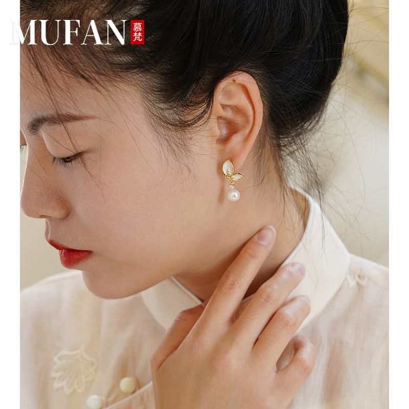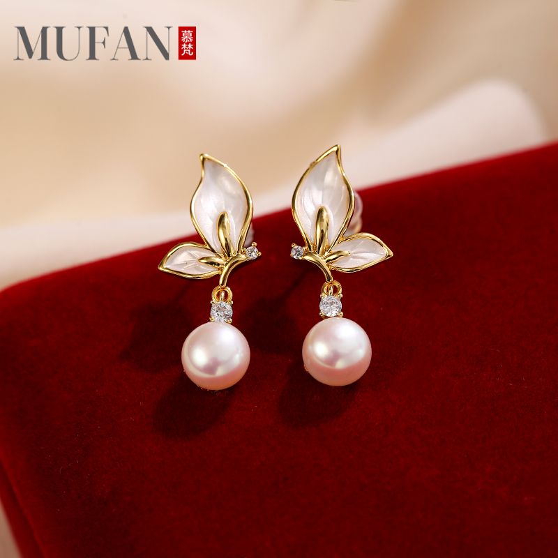 慕梵 仙仙珐琅工艺拉丝蝴蝶淡水珍珠耳钉