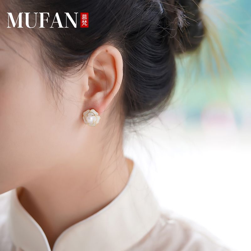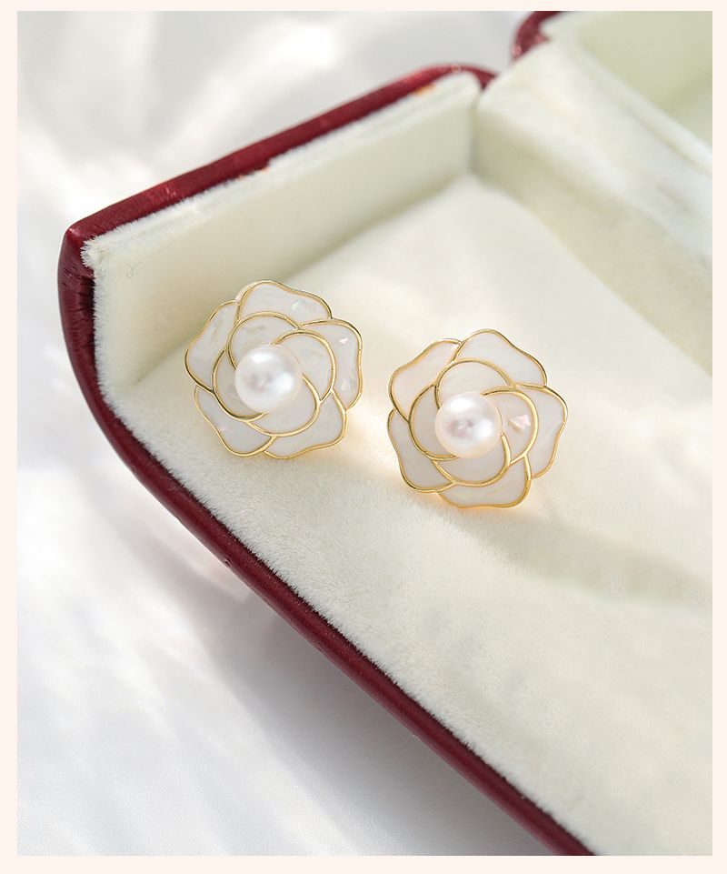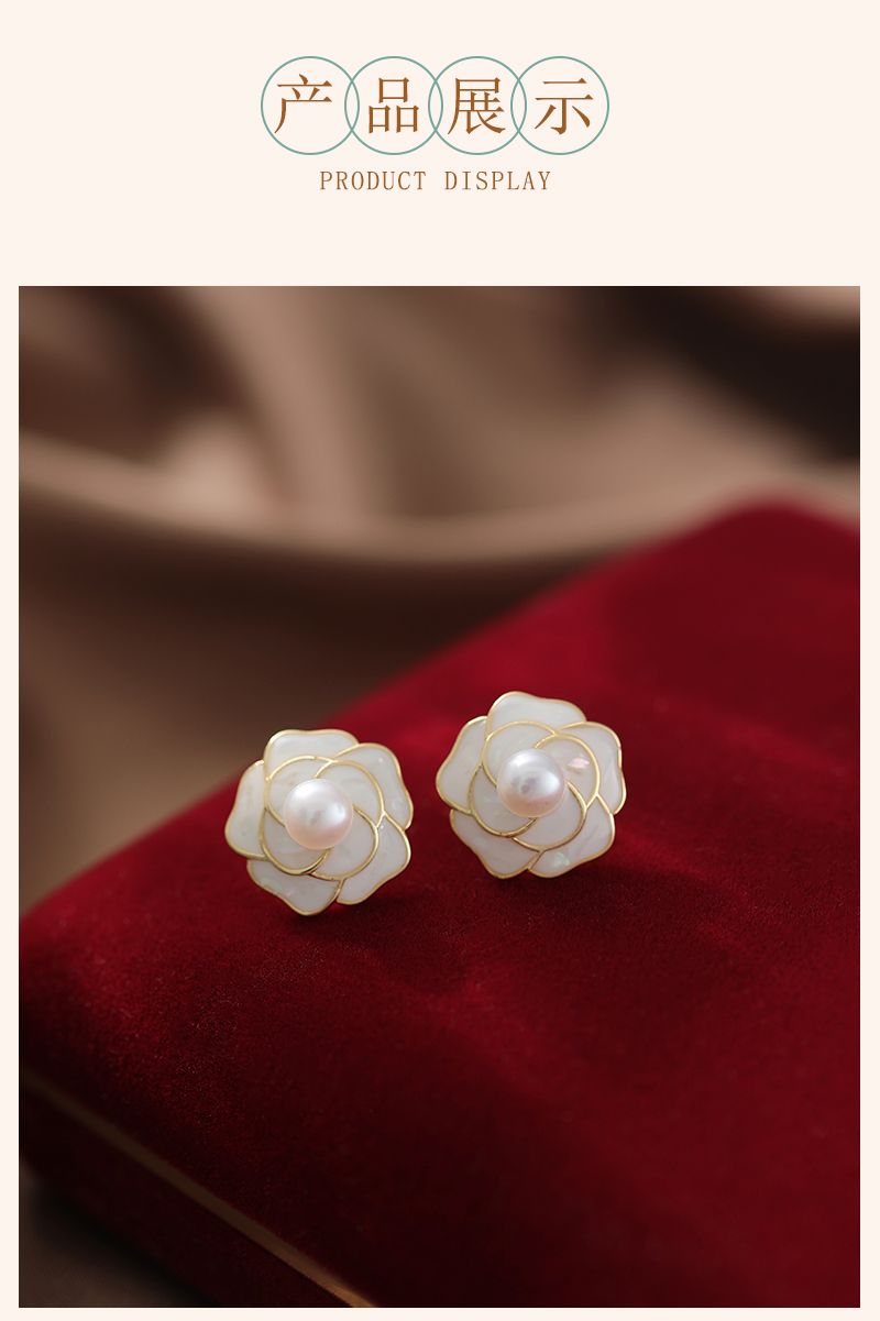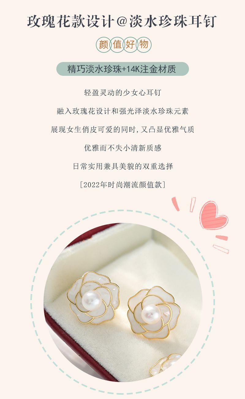 商品名称:玫瑰花滴釉工艺淡水珍珠耳环