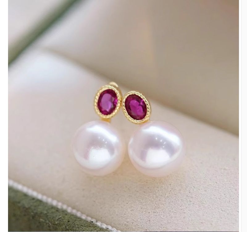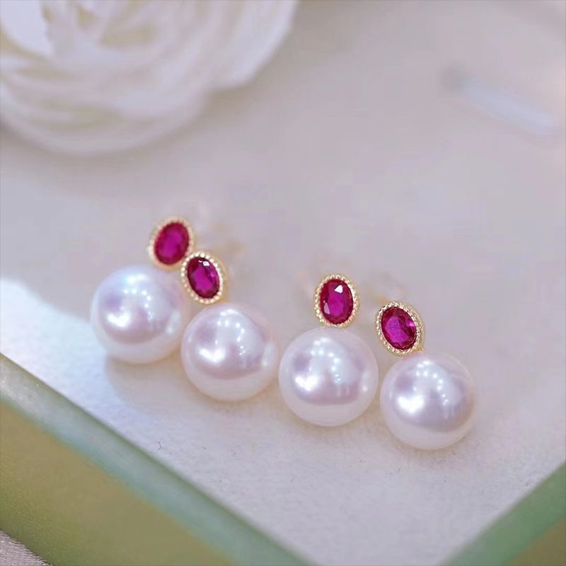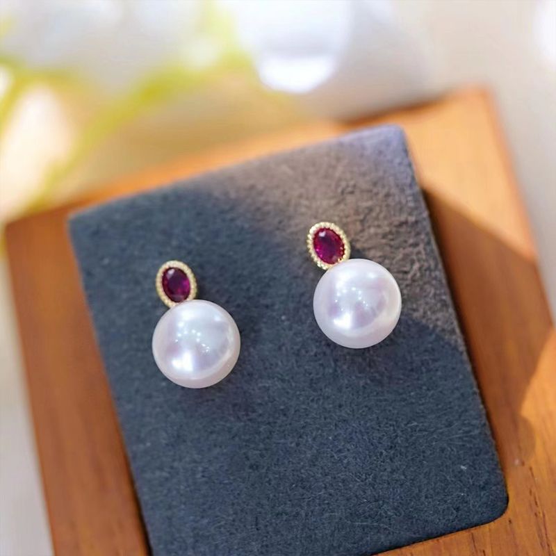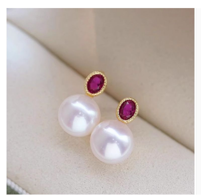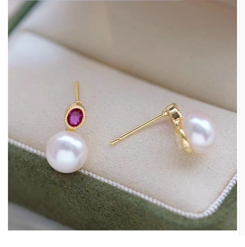 商品名称:慕梵 心动信号红宝石色淡水珍珠复古简约耳钉