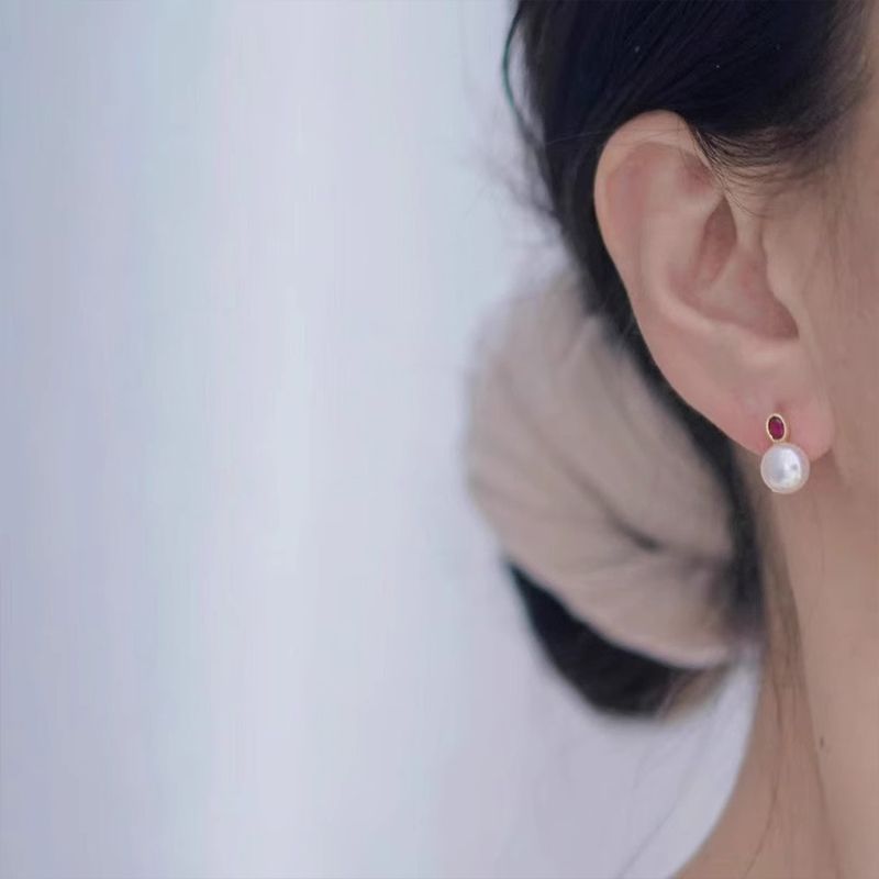 慕梵 心动信号红宝石色淡水珍珠复古简约耳钉