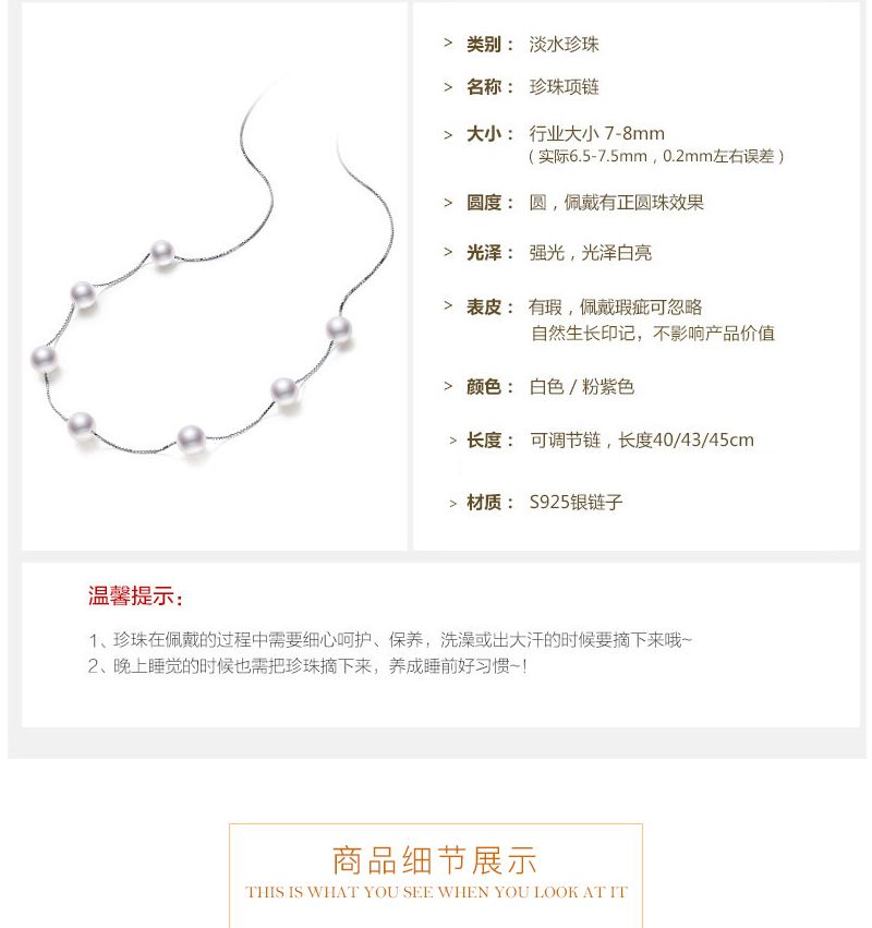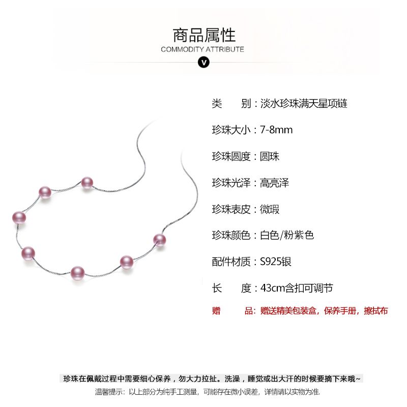 商品名称:流云 7-8mmS925银圆形淡水满天星项链经典锁骨颈链吊坠