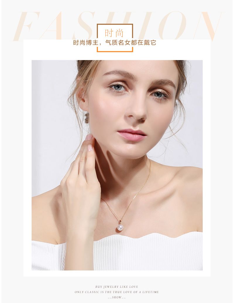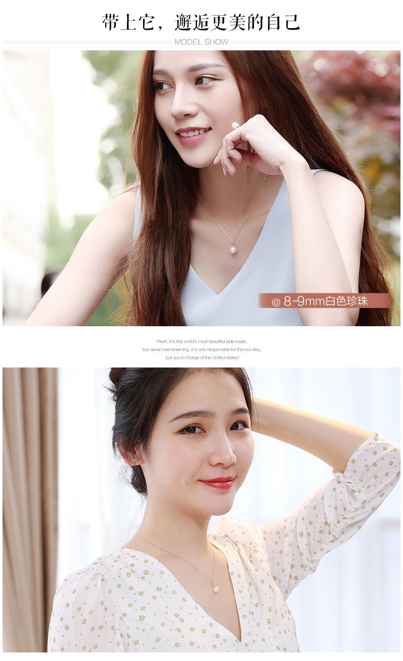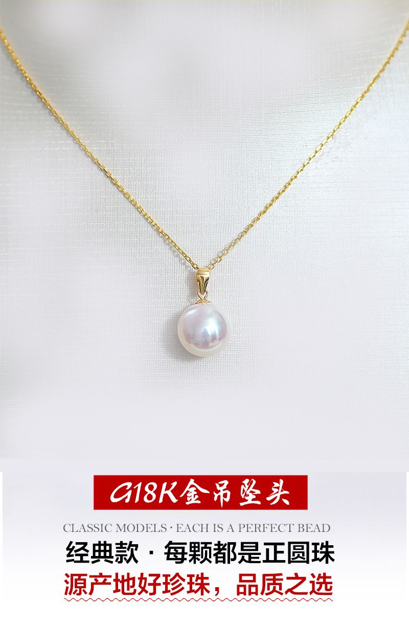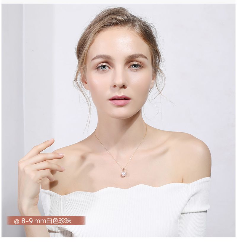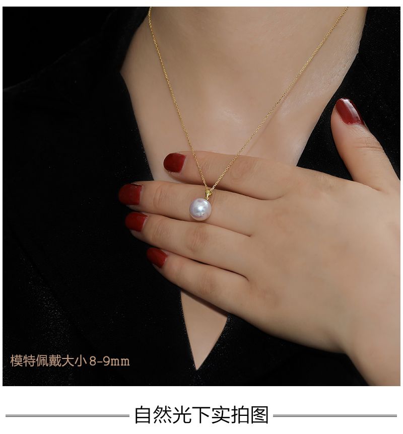 商品名称:依恋 正圆白色淡水珍珠项链单颗挂坠18K金一颗大吊坠女