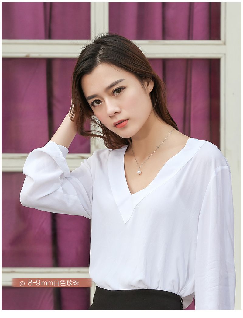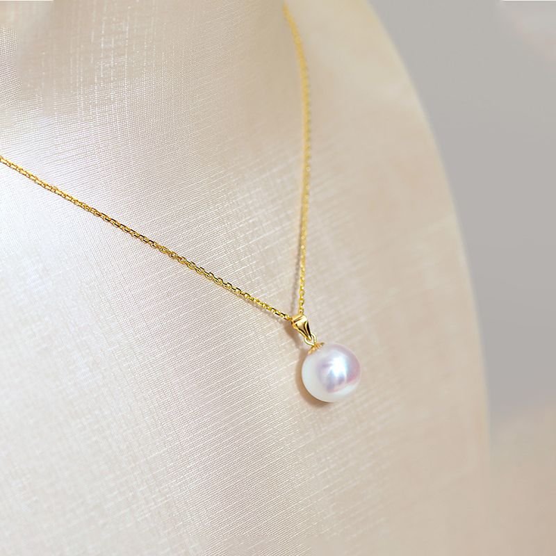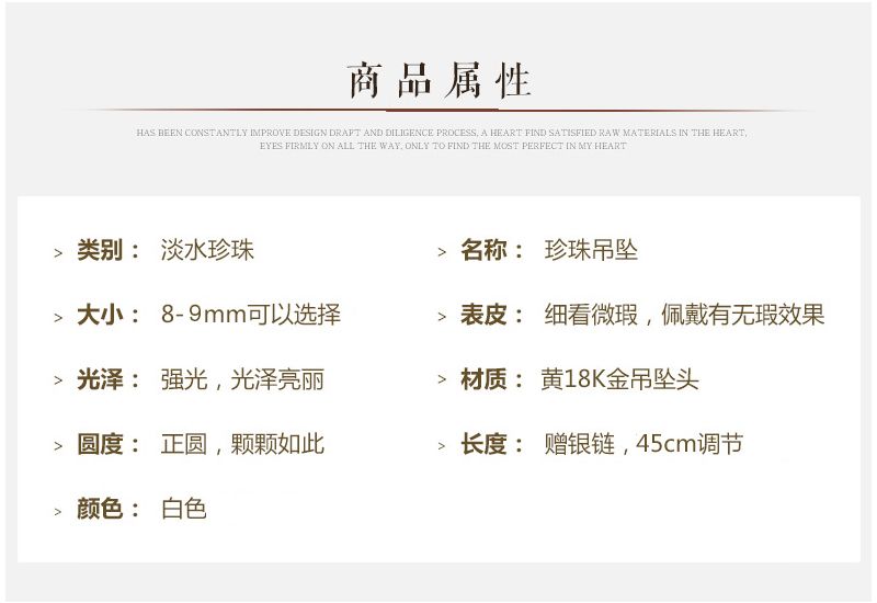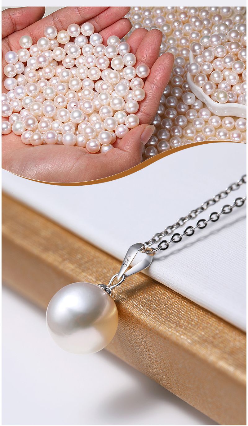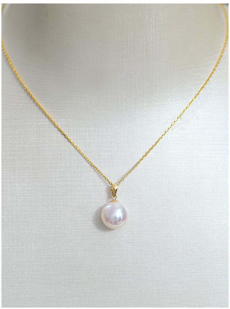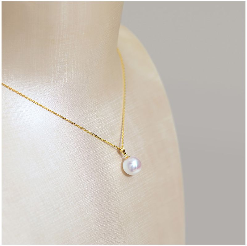 商品名称:依恋 正圆白色淡水珍珠项链单颗挂坠18K金一颗大吊坠女