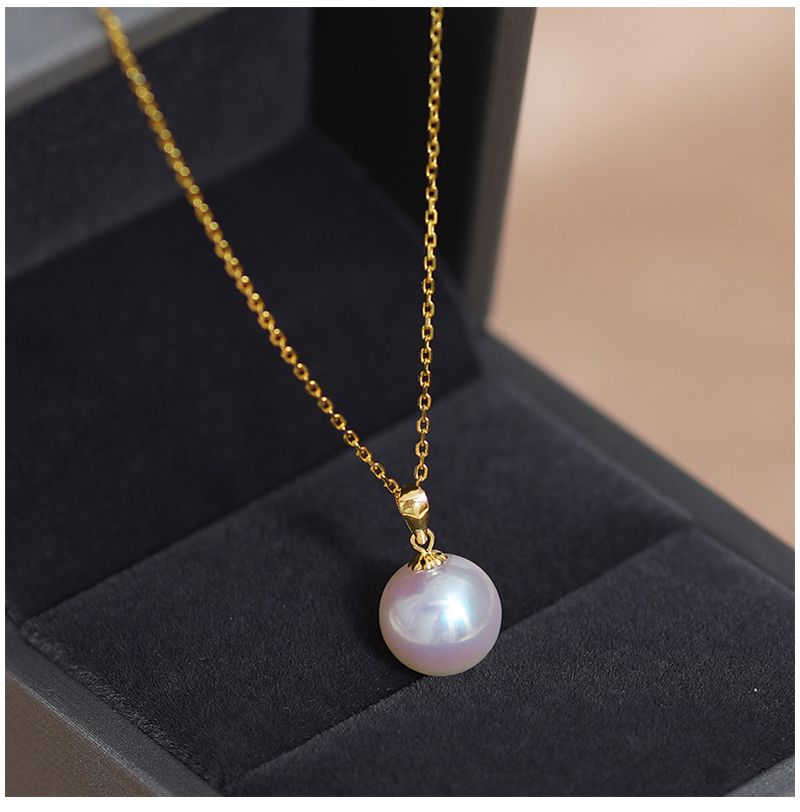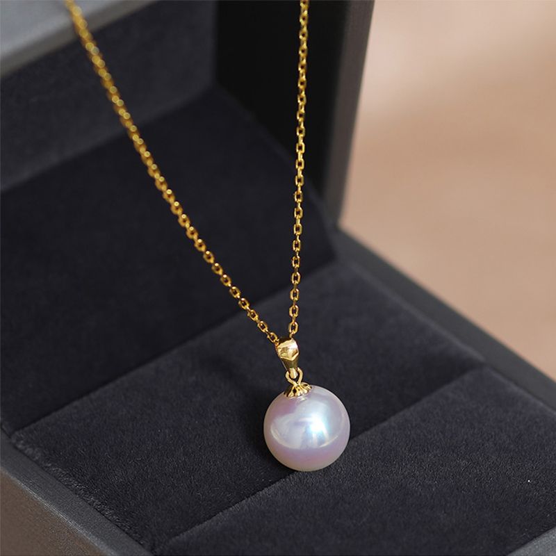 依恋 正圆白色淡水珍珠项链单颗挂坠18K金一颗大吊坠女