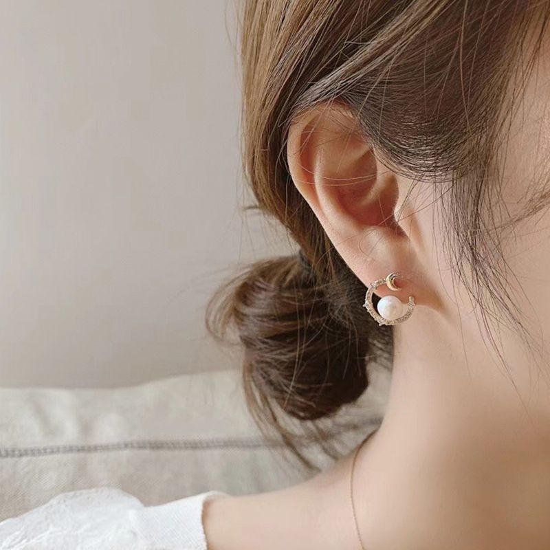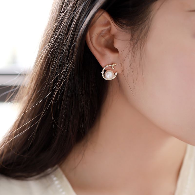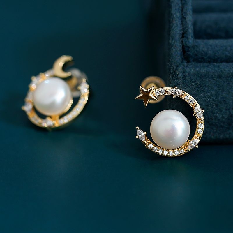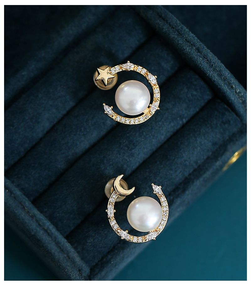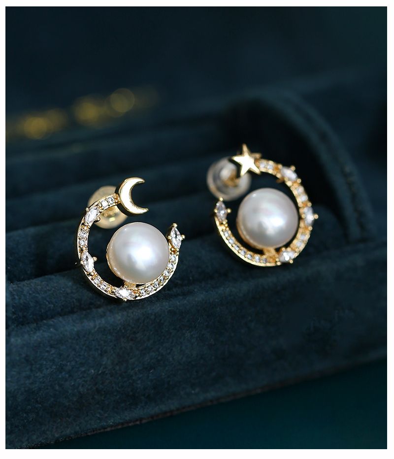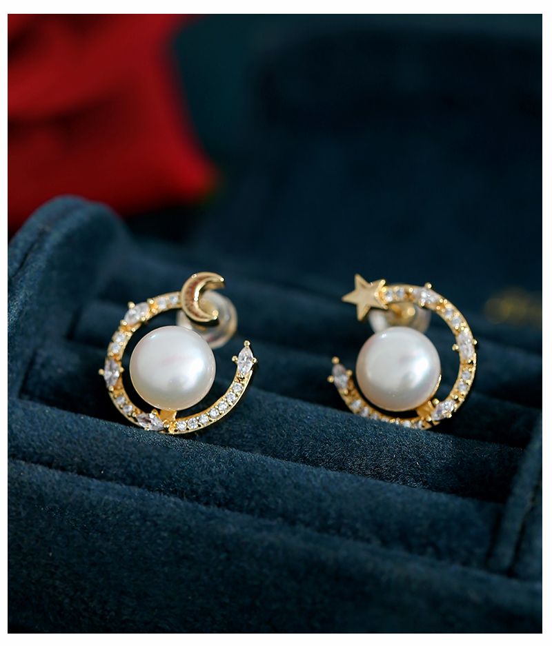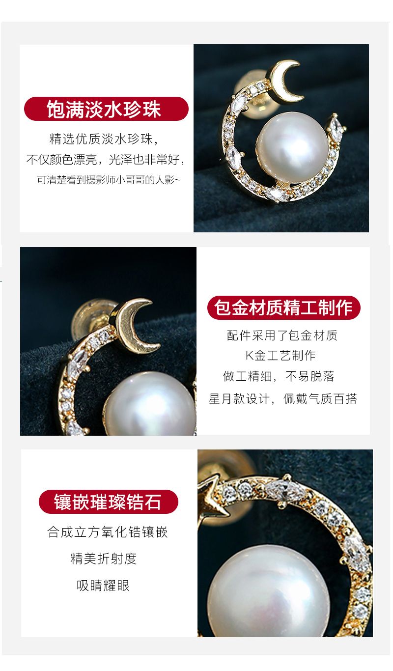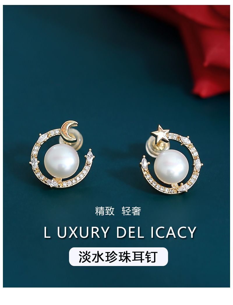 慕梵 星月精致淡水珍珠耳钉S925银针A254